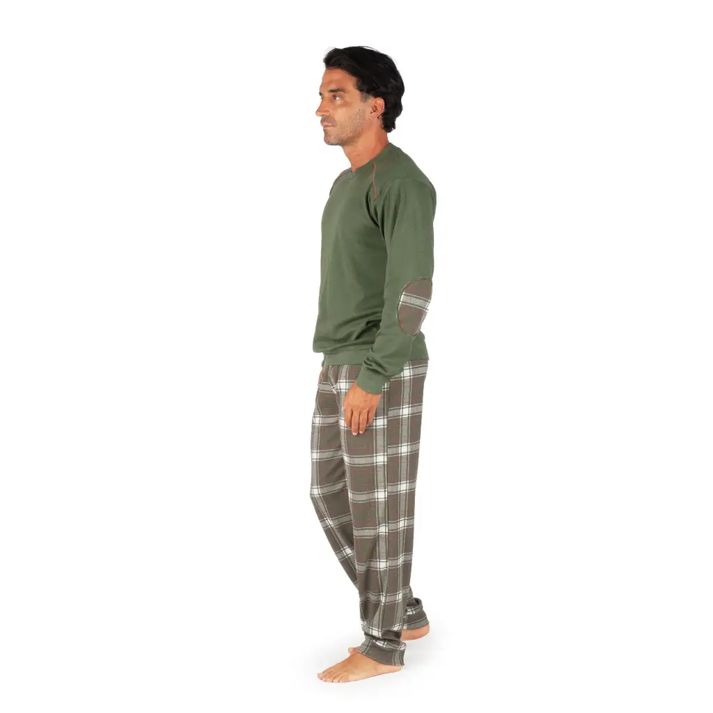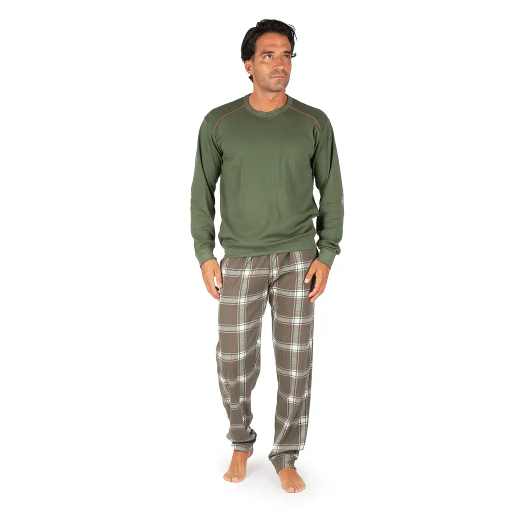 Pigiama uomo paricollo a manica lunga in caldo cotone interlock