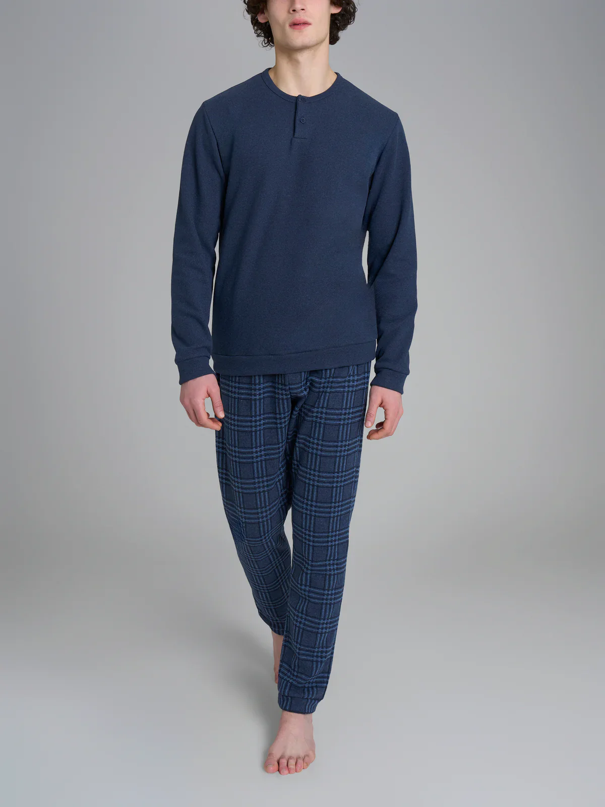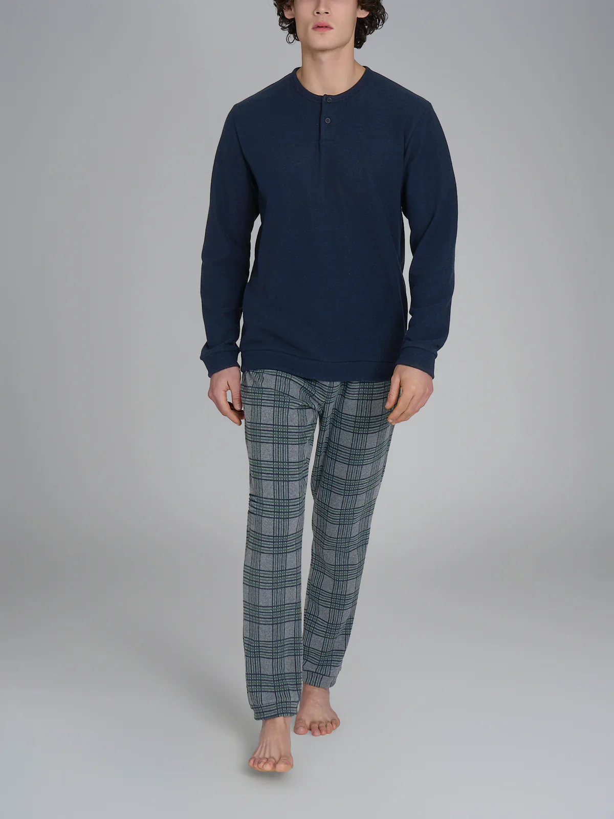 Pigiama a serafino in caldo Cotton Eco Pile con maniche lunghe.