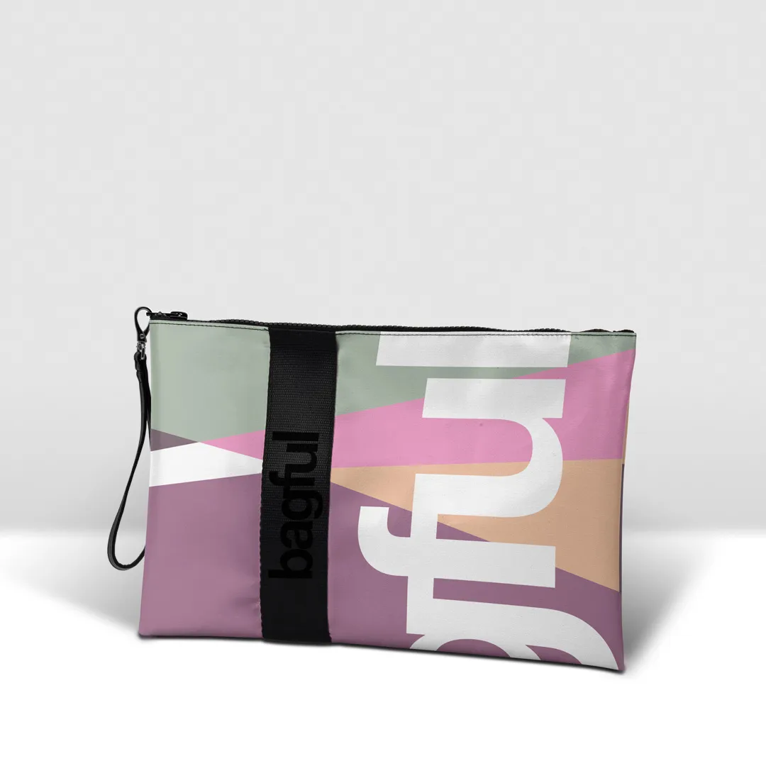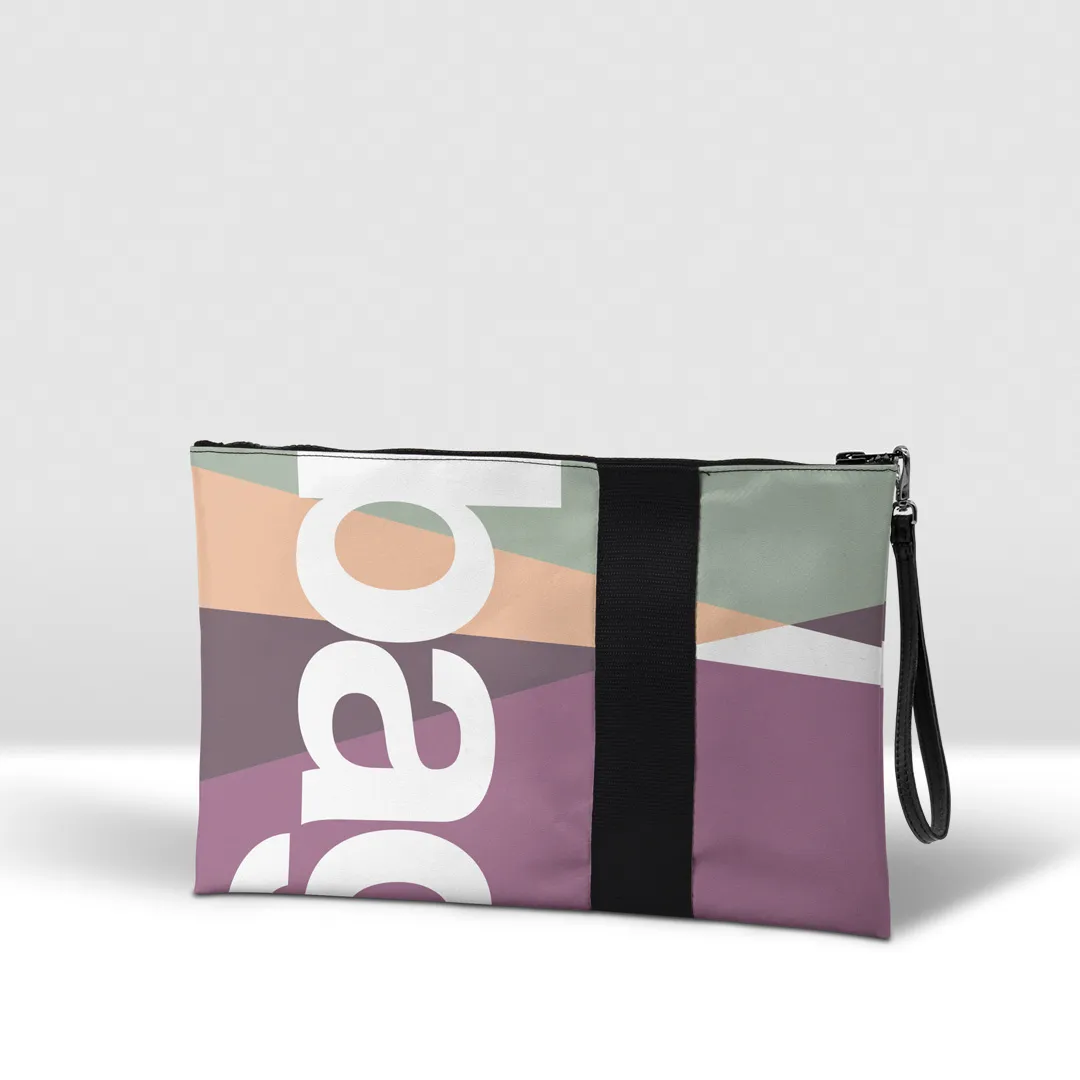 Pochette in banner PVC 560, stampato, con zip pressofusa.
