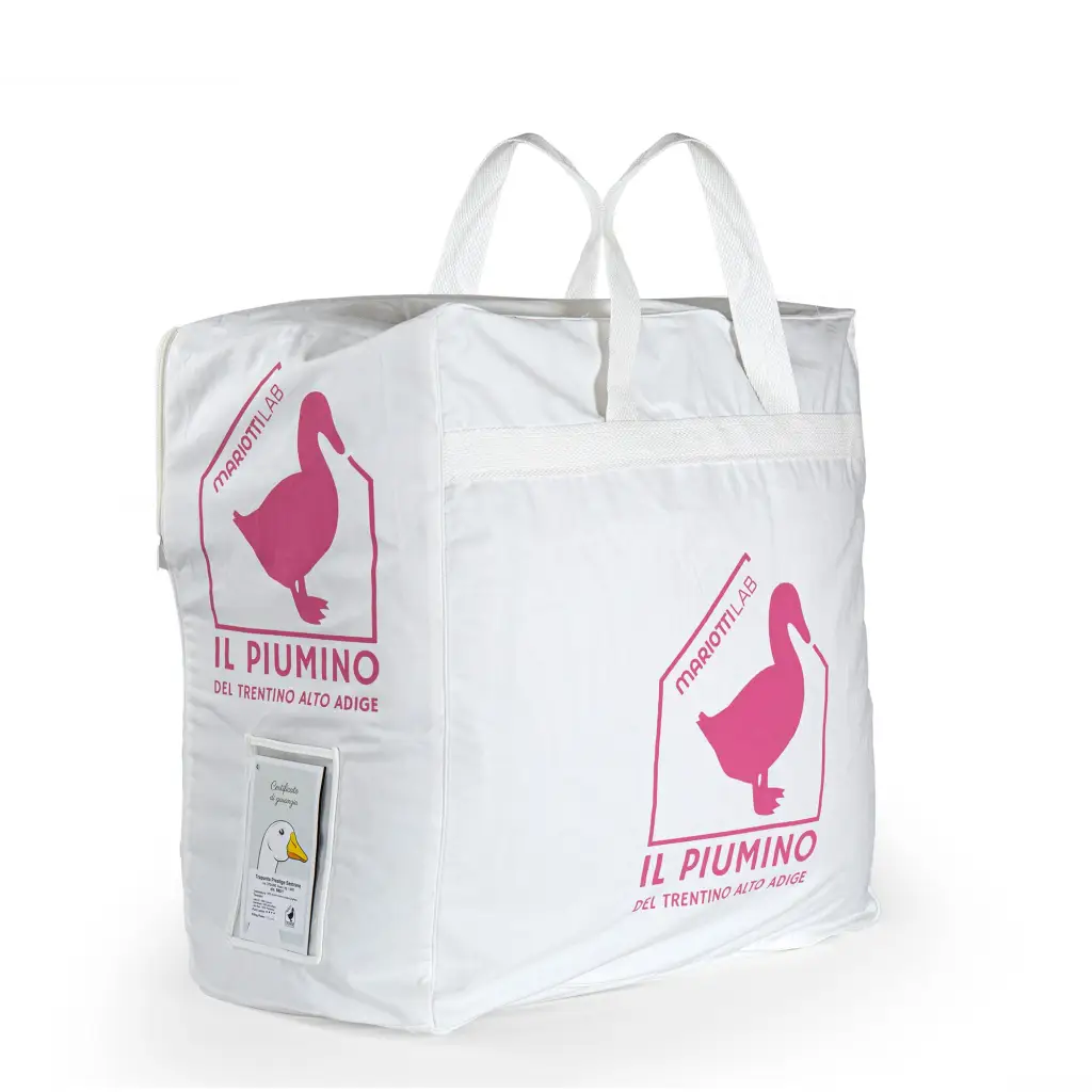 Piumino San Candido nella pesantezza Warm invernale in 100% Piumino d’oca argentato. Il piumino d’oca รจ il migliore dei materiali da imbottitura per la sua capacitร  di termoregolazione della temperatura e assorbimento dell’umiditร  per garantire il calore perfetto. L’imbottitura interna รจ interamente in Piumino d’oca, le piume piรน pregiate, che donano morbidezza e sofficitร  al tatto.Le piume dei piumini d’oca Mariotti sono tutte trattate secondo la normativa vigente e provengono da allevamenti che rispettano le oche e garantiscono l’assenza di maltrattamento. Il tessuto di rivestimento esterno รจ realizzato in tela 100% Cotone a ‘tenuta piumino’ che permette all’aria di entrare ma trattiene il piumino all’interno. La trapuntatura รจ realizzata a cassette con fettucce distanziatrici interne. Questa specifica lavorazione permette di non avere riquadri a sรจ stanti, ma che questi siano internamente collegati da microfori che permettono il passaggio dell’aria, ma non della piuma che rimarrร  all’interno del proprio cassettone. Il Piumino รจ disponibile* Piazza e Mezzo: 200×200 cm – imbottitura 0,800 kg* Matrimoniale: 250×200 cm – imbottitura 1,000 kgPunti di CaloreWarm + + + +Lavaggio e manutenzioneSi consiglia di lavare il piumino ad una temperatura di 30ยฐ ogni 4/5 anni. Far asciugare bene il piumino lontano da fonti dirette di calore e ben steso all’aria. Si raccomanda l’uso della sacca in cotone in cui viene venduto per riporlo nel periodo in cui non viene utilizzato. NON mettere sottovuoto.- Piumino in 100% Piumino d’oca bianca vergine siberiana- Tessuto inlett 100% Cotone a tenuta piumino- Made in Italy, piumino del Trentino – Alto Adige- Riferimento articolo: SANCANDIDOWARM- Composizione:Esterno: 100% CotoneInterno: 100% Piumino d’oca bianco vergine siberiana
