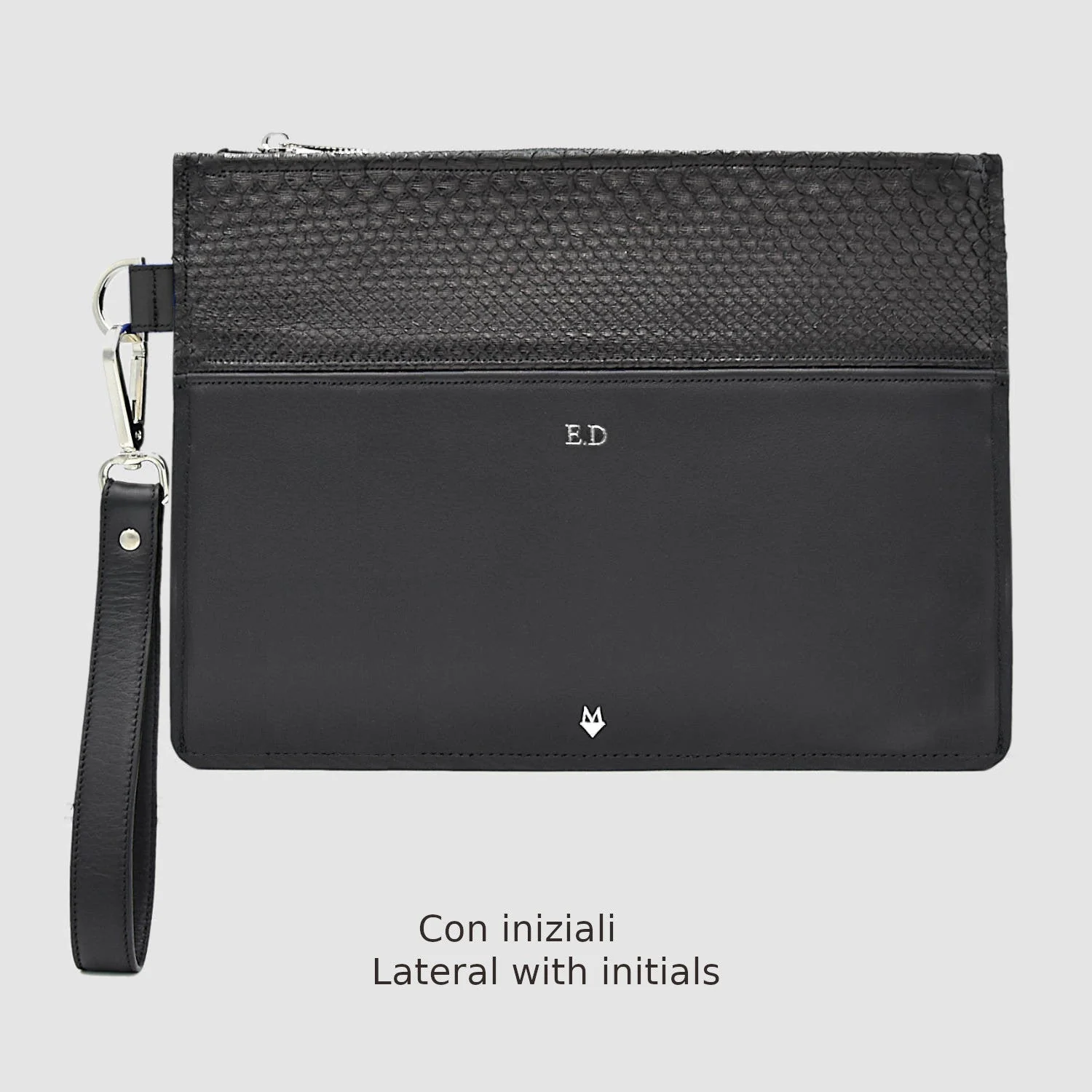 Pochette Borsa Uomo mod. DB in vera pelle di Pitone – Personalizzabile con iniziali