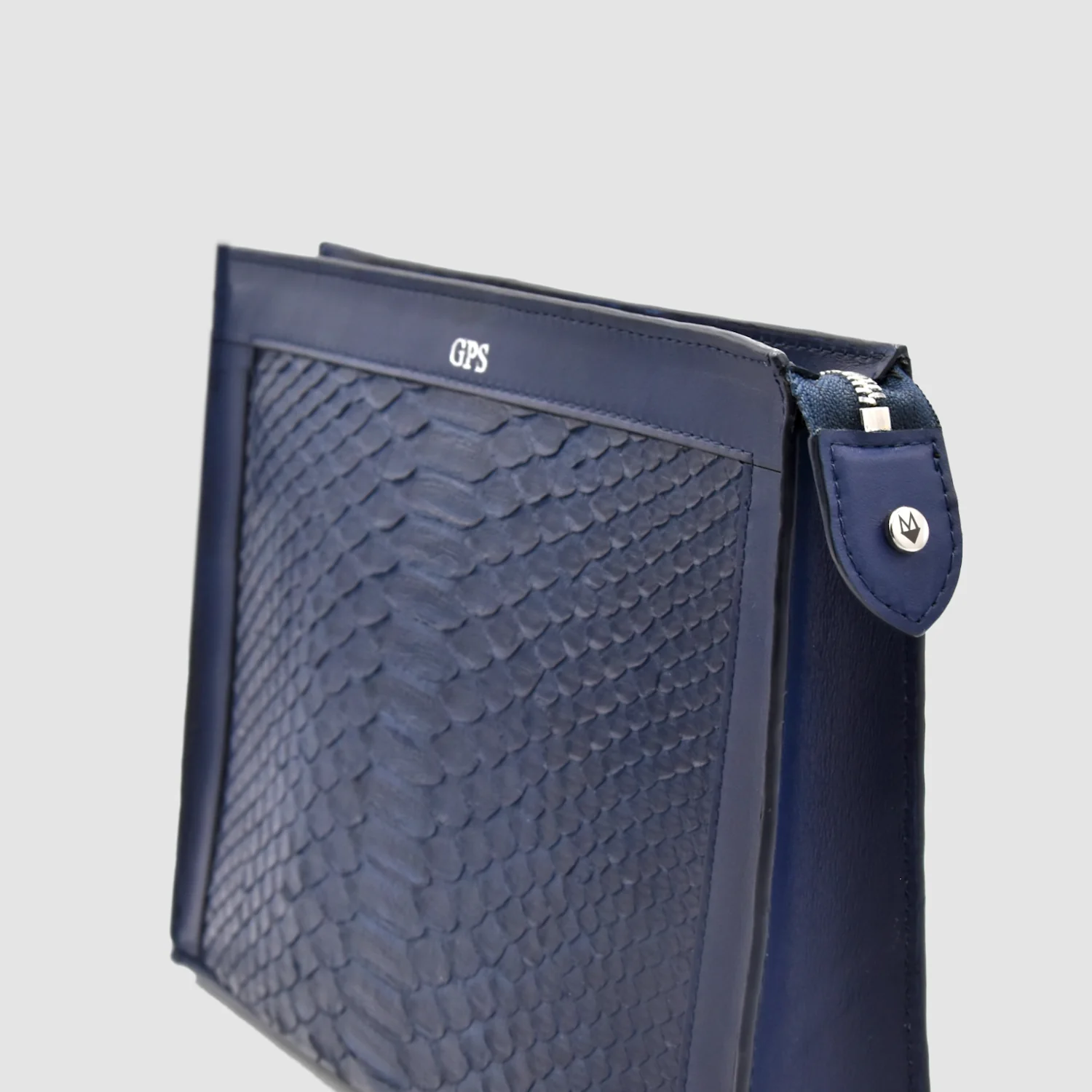 Pochette clutch mod. “Conquistatore” borsello Uomo in vera pelle di Pitone Personalizzabile con iniziali – Blu scuro