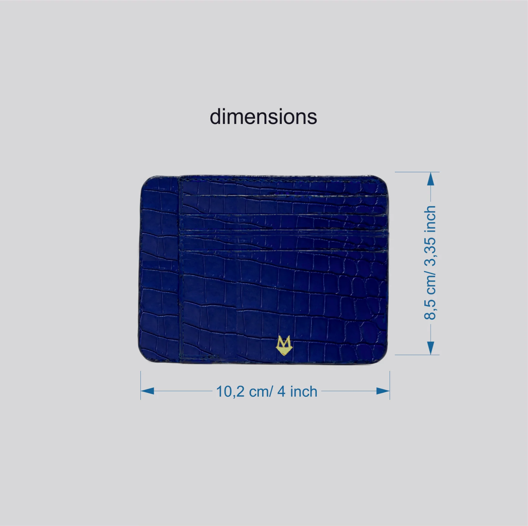 Caratteristiche Tecniche: Vero Coccodrillo MADE IN ITALY Colore Blu Zafiro – su ordinazione molti altri colori disponibili, contattaci per richieste specifiche Dimensioni: 8.5 x 10.2 x 0.3 (A x L x P) (in cm)