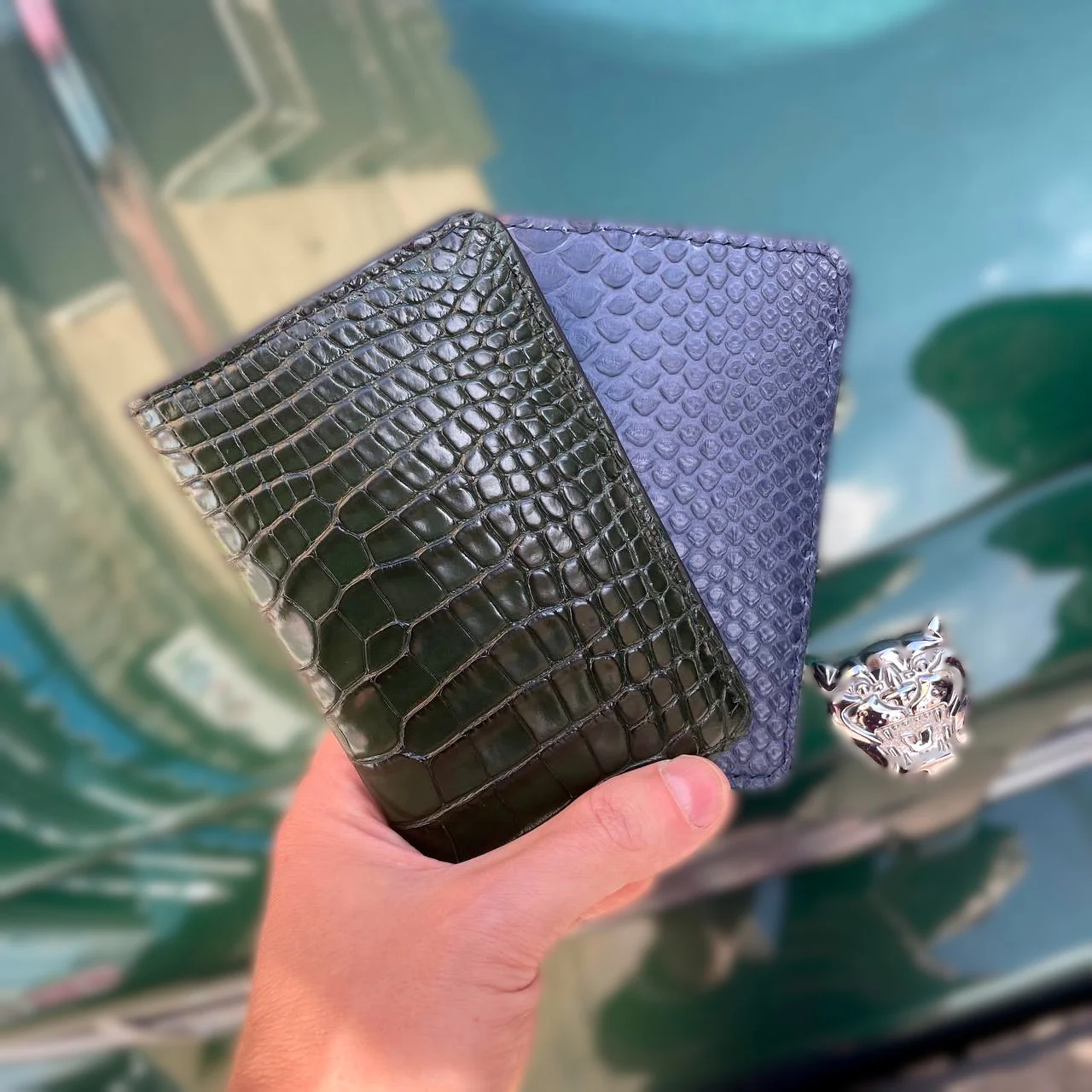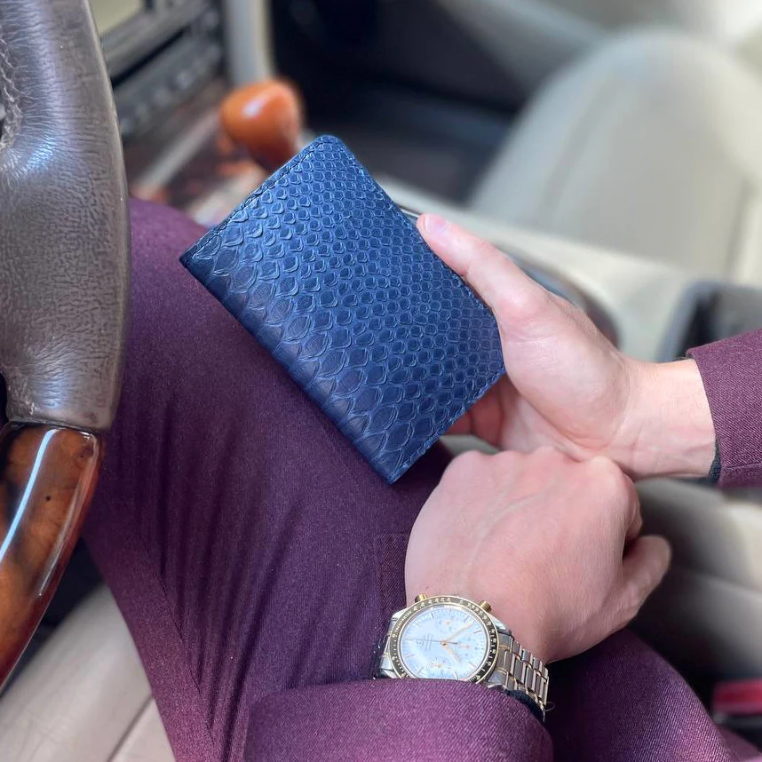 Porta carte mod “Podio” Organizer tascabile in vera pelle di Pitone Personalizzabile – Blu Navy