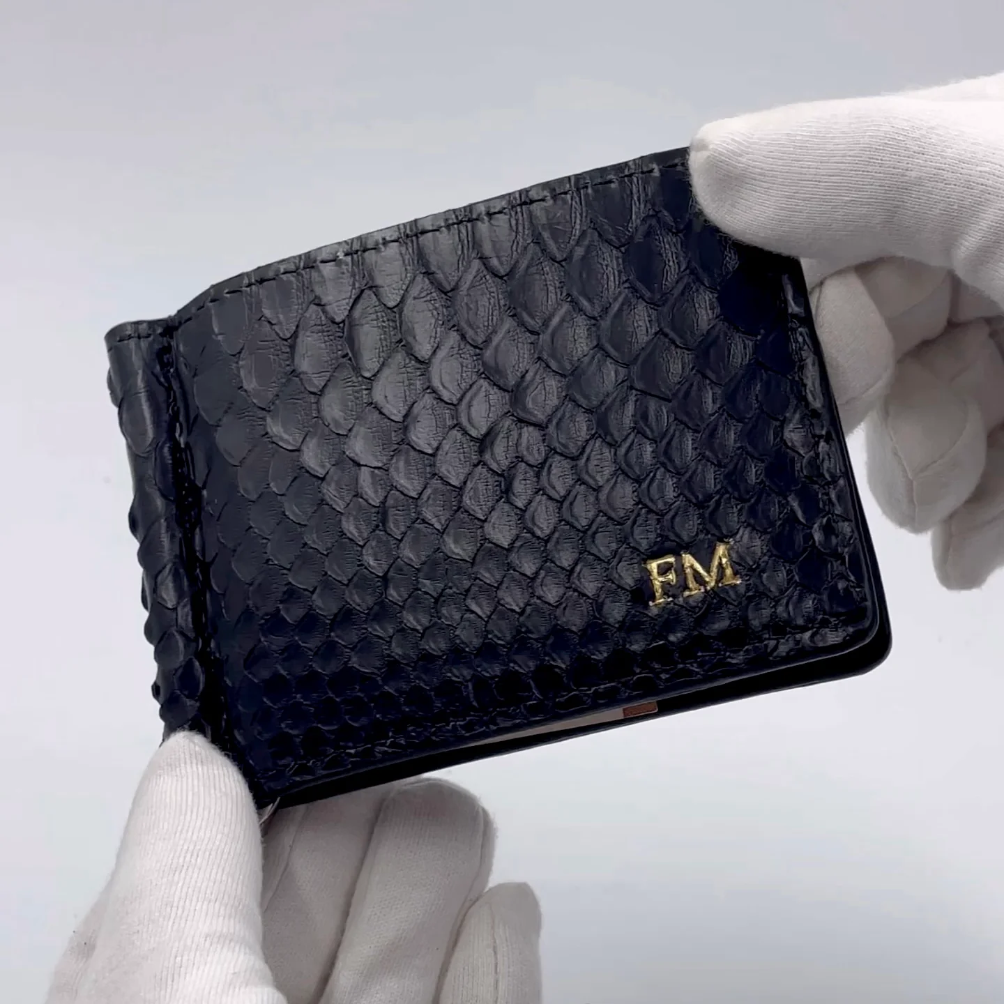 Portafoglio con Fermasoldi mod. “Avanti” in vera pelle di Pitone Personalizzabile