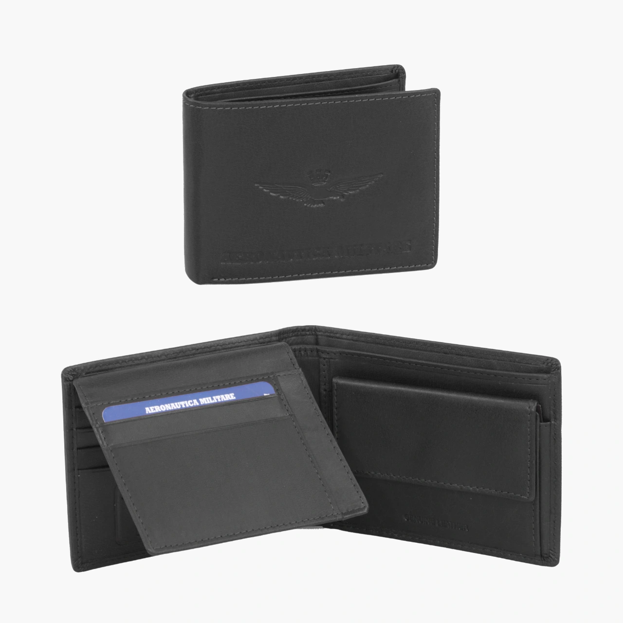 Portafoglio con portaspicci e patta realizzato in pelle di alta qualità con un effetto vintage, questo portafoglio Aeronautica Militare della linea New Eagle è l’accessorio ideale per chi cerca classe e praticità. Sul fronte spicca il logo alato del brand, impresso a rilievo per un tocco distintivo e raffinato.