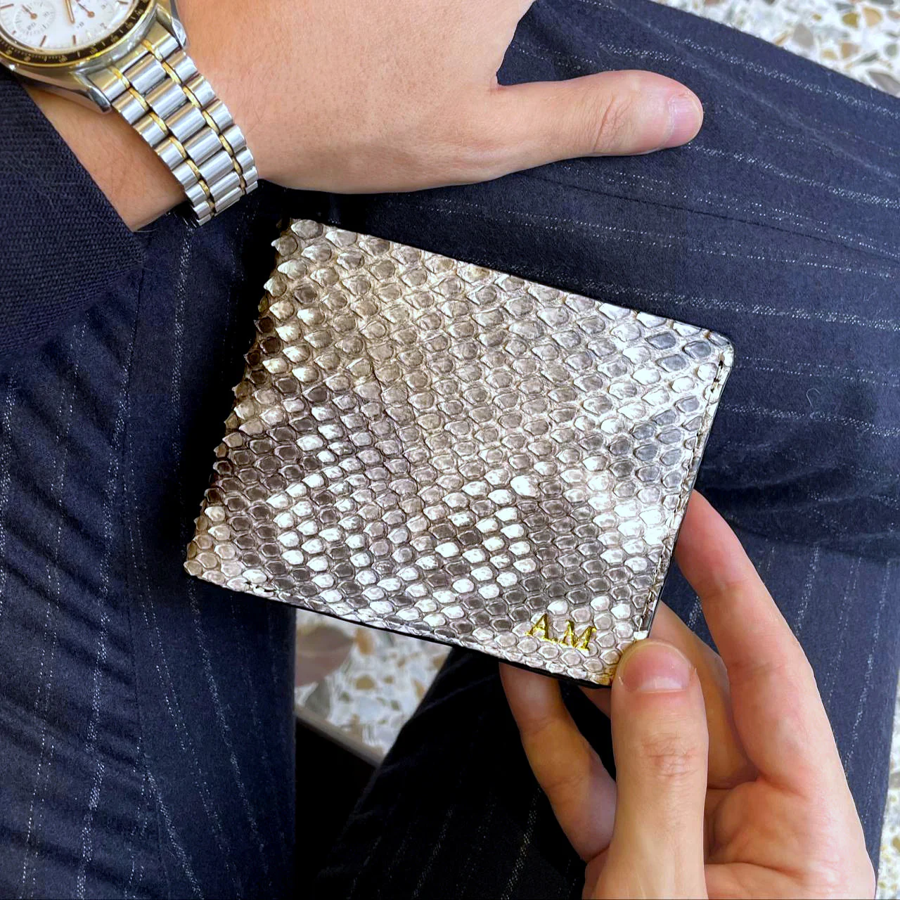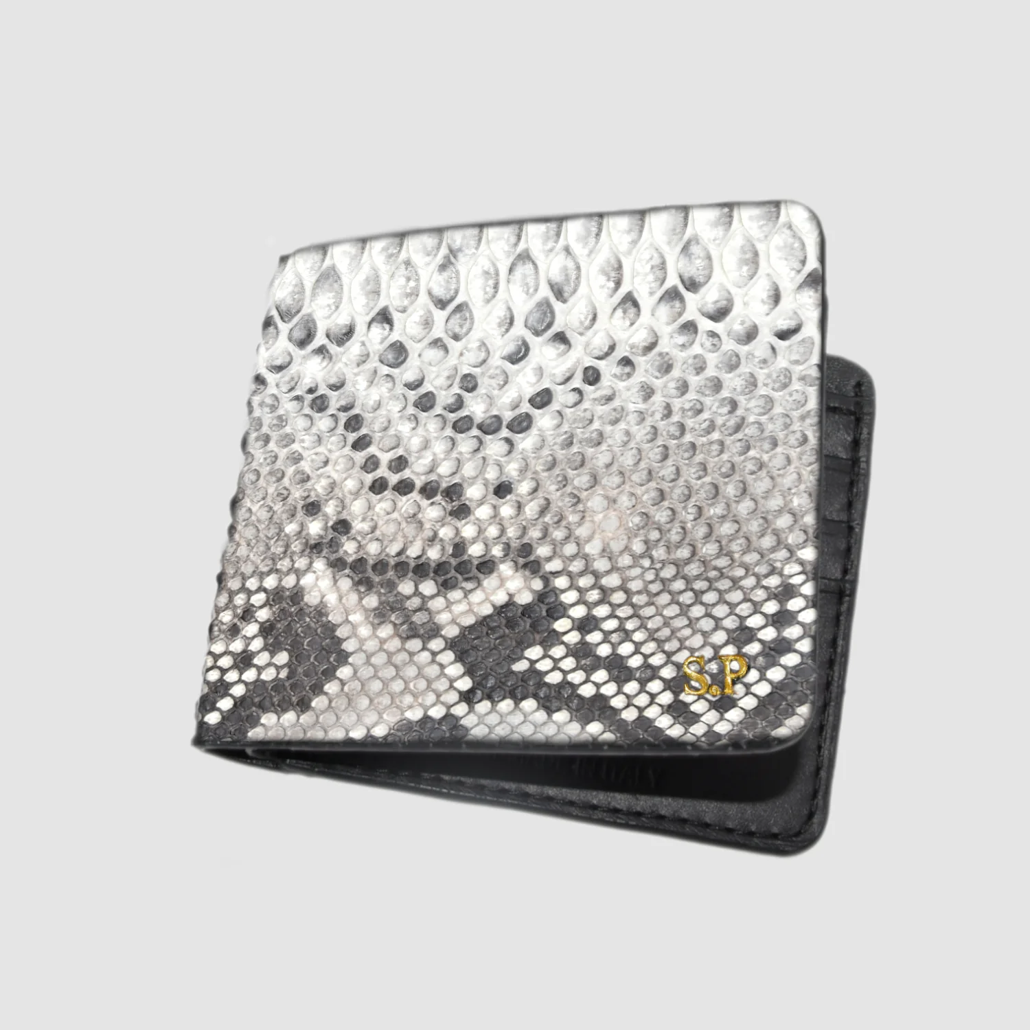 Lavorato con maestria e amore per i dettagli. Rispettando e valorizzando la bellezza e il valore dei materiali pregiati che utilizziamo. Portafoglio in Vero Pitone bianco e nero. Con sei portacarte e una tasca per i contanti. Compatto e comodo. Compagno per la vita di tutti i giorni. Personalizzabile con le proprie iniziali. In vero pitone per avere qualcosa di unico ed emozionante. Una creazione che si fa notare, si fa guardare come ogni prodotto Mespecta, pur rimanendo di grande raffinatezza.