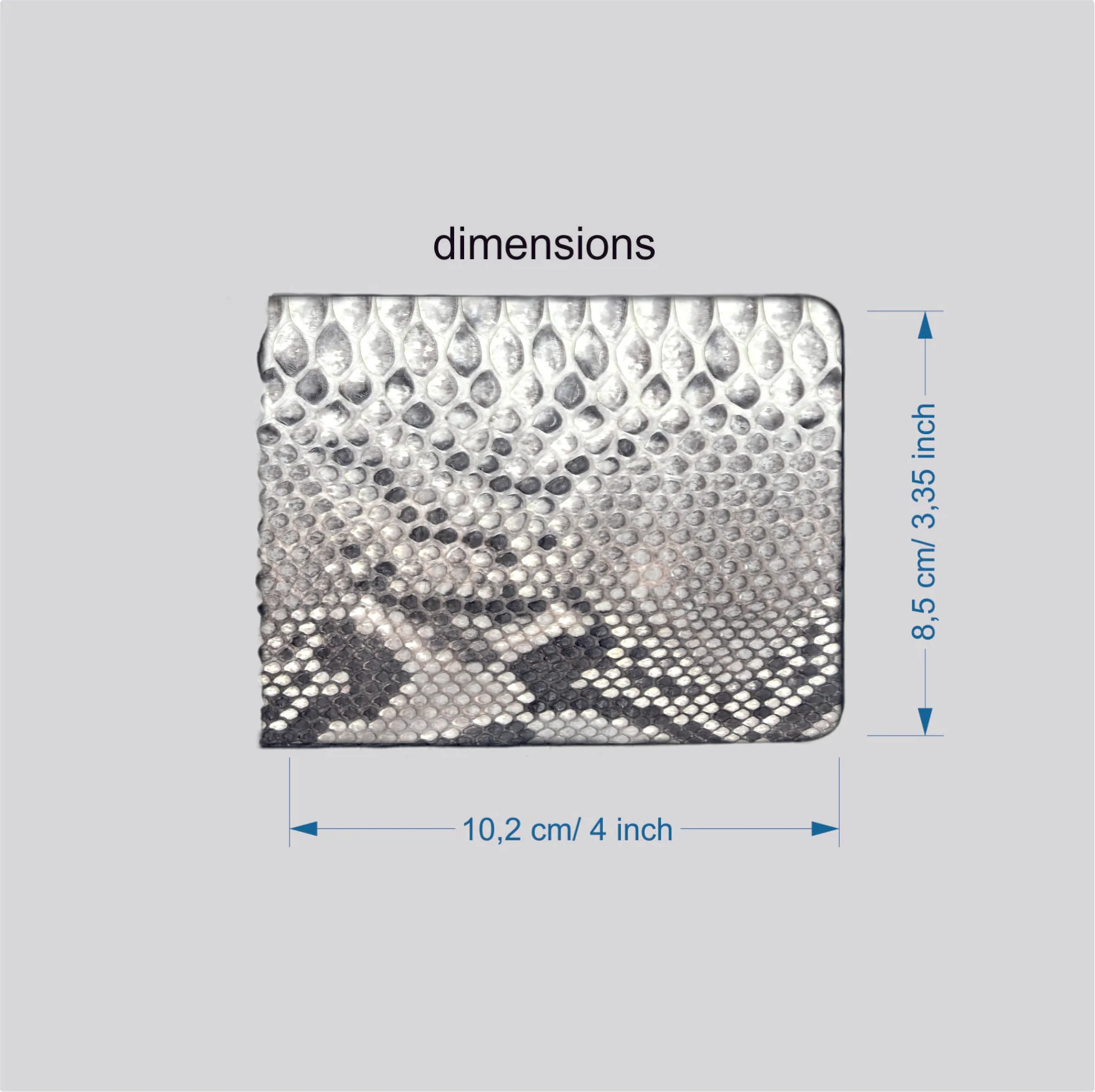 Caratteristiche Tecniche: Vero Pitone Colore Bianco e Nero Dimensioni: 8.5 x 10.2 x 0.3 (A x L x P) (in cm)