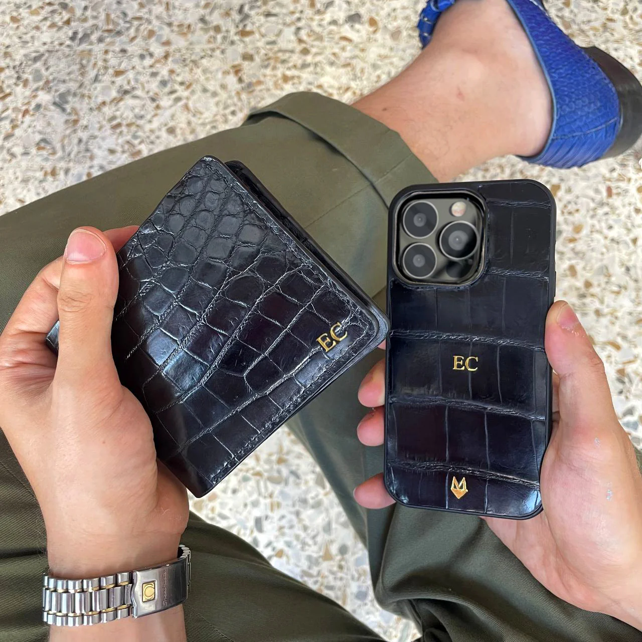 Lavorato con maestria e amore per i dettagli. Rispettando e valorizzando la bellezza e il valore dei materiali pregiati che utilizziamo. Portafoglio in Vero Coccodrillo nero. Con sei portacarte e una tasca per i contanti. Compatto e comodo. Compagno per la vita di tutti i giorni. Personalizzabile con le proprie iniziali. In vero Coccodrillo per avere qualcosa di unico ed emozionante. Una creazione che si fa notare, si fa guardare come ogni prodotto Mespecta, pur rimanendo di grande raffinatezza.