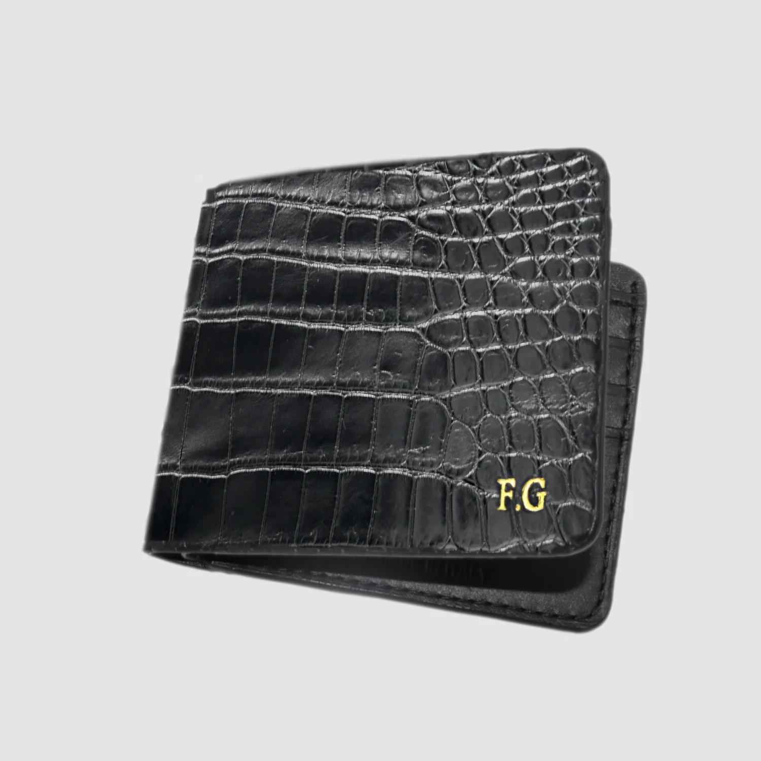 Portafoglio mod. “Esemplare” in vera pelle di Coccodrillo Nero Personalizzabile