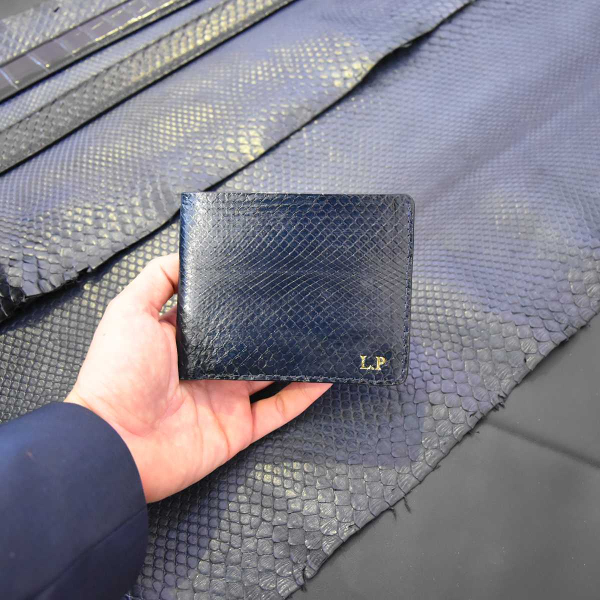 Portafoglio mod. “Esemplare” in vera pelle di Pitone Personalizzabile – Blu scuro