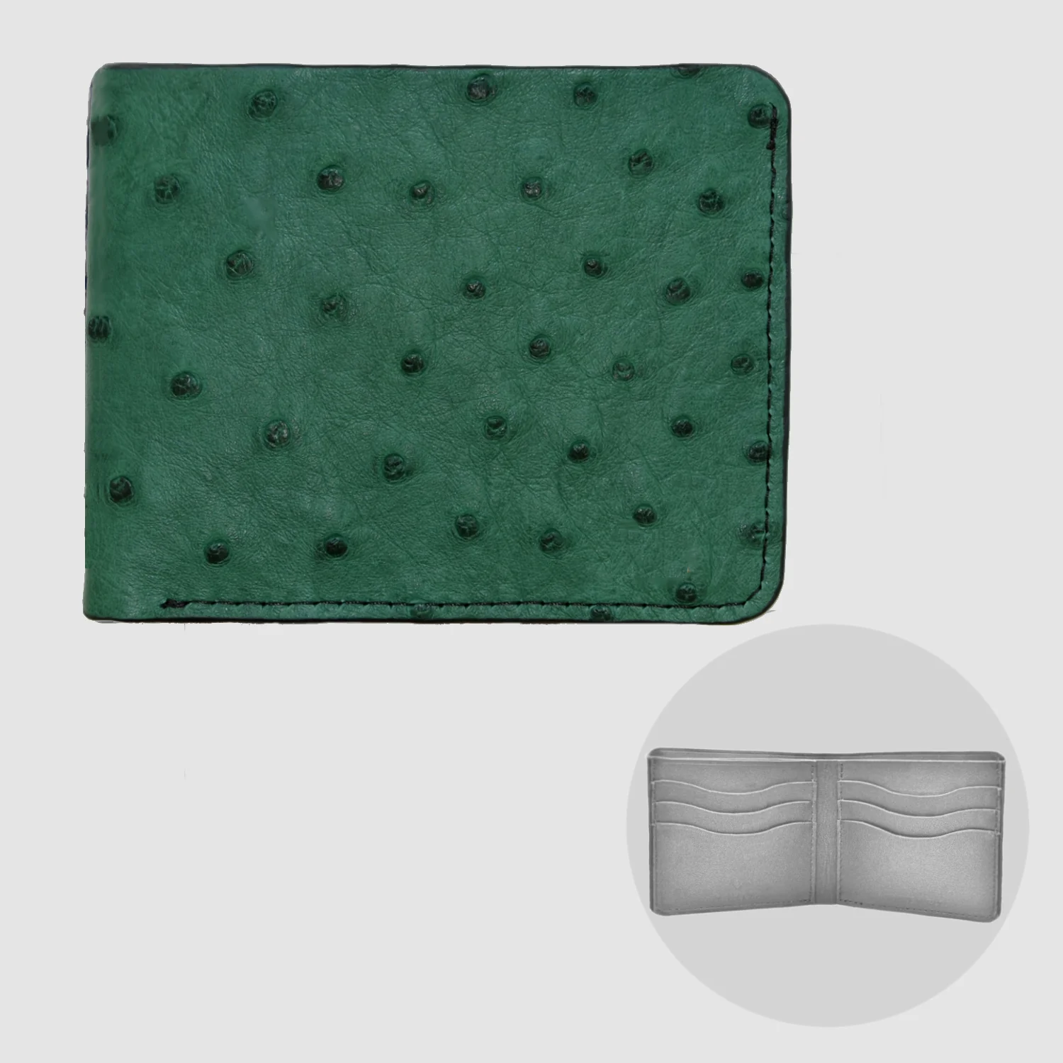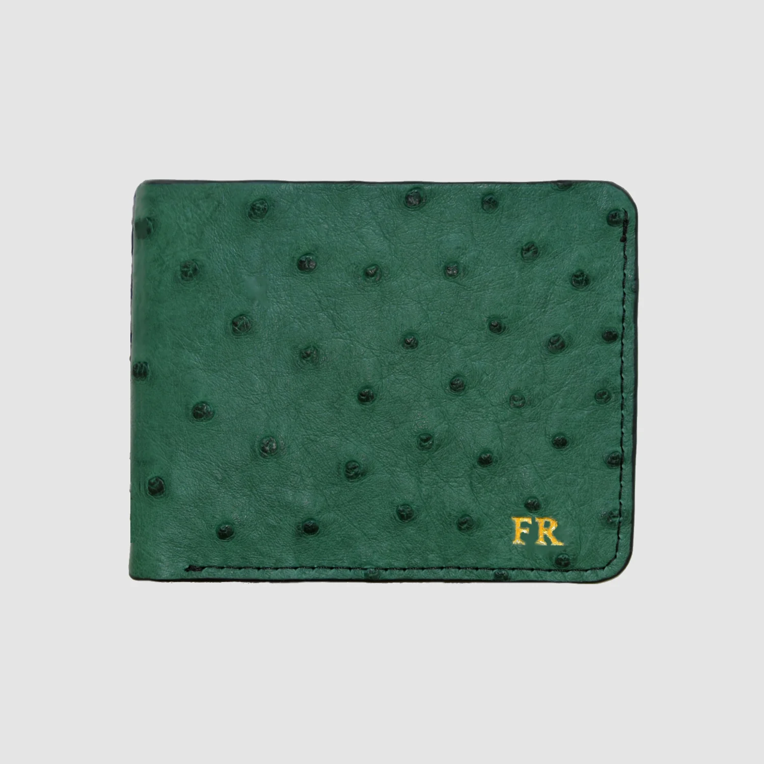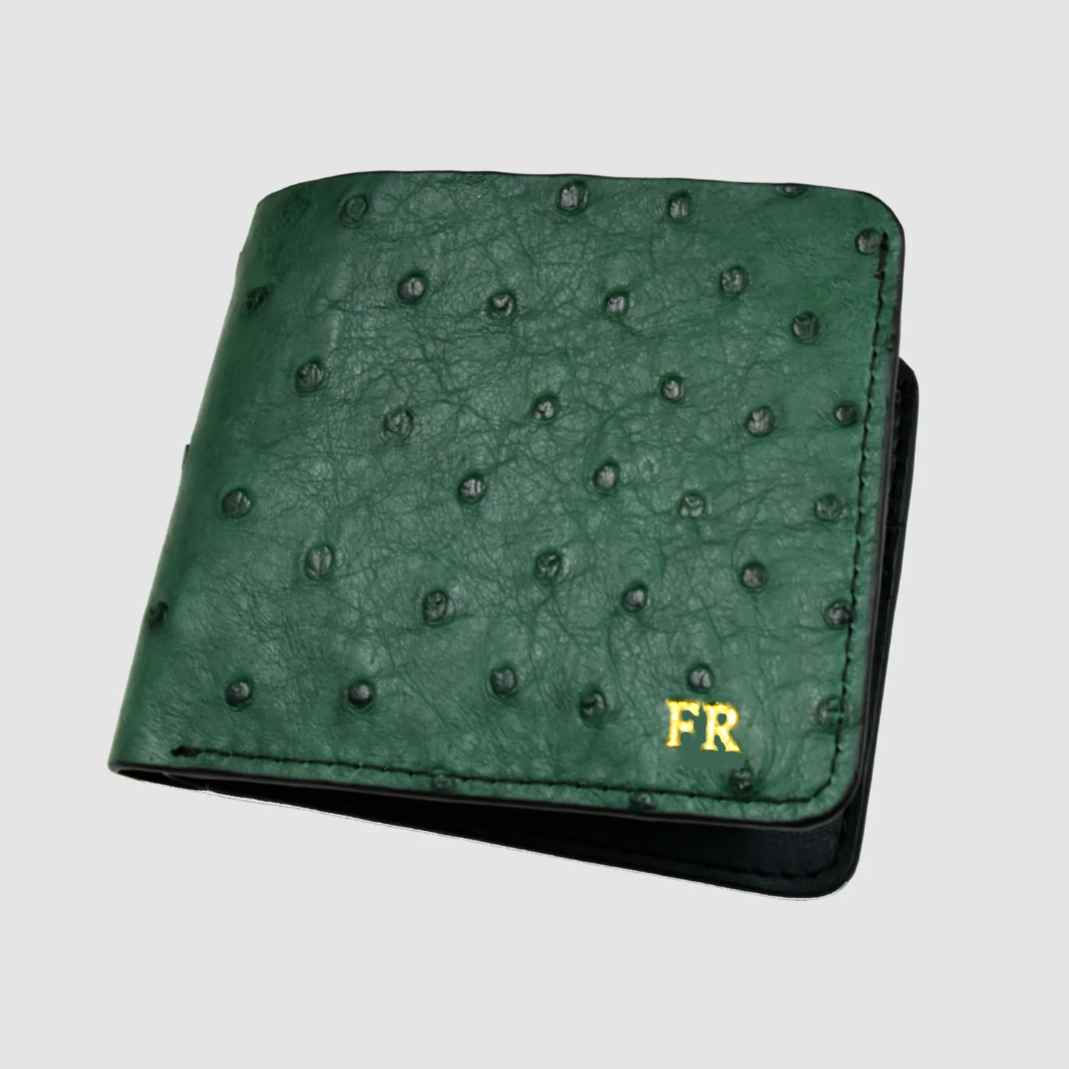Portafoglio mod. “Esemplare” in vera pelle di Struzzo Personalizzabile – Verde Scuro
