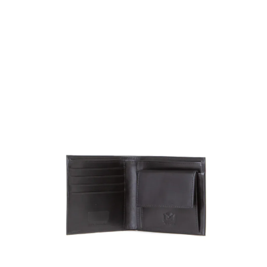 Portafoglio uomo Valentino in vera pelle. Il marchio in metallo sul davanti indica il tuo gusto per la qualità. Ottimizza la tua organizzazione finanziaria con scomparti appositi per monete e carte.