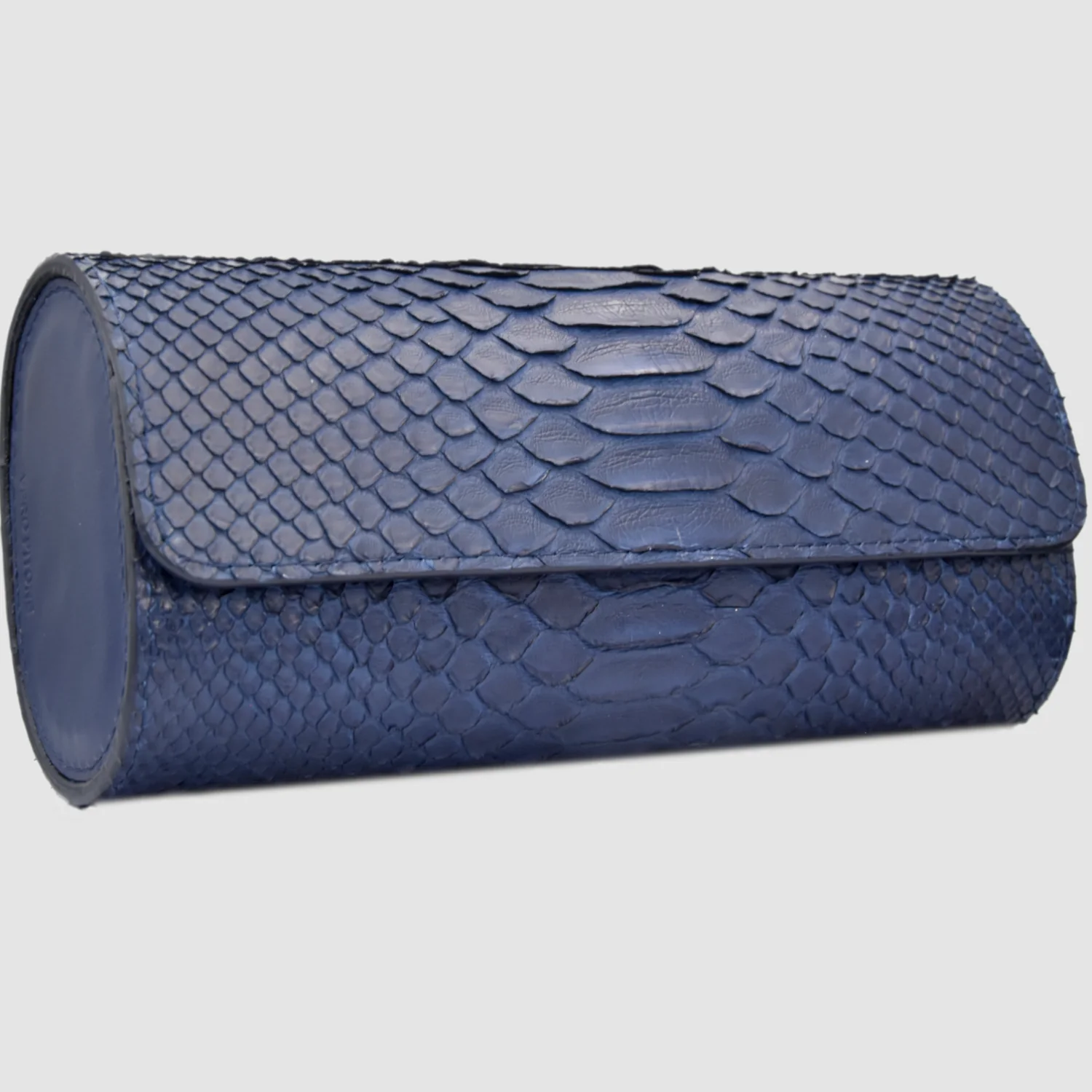 Portaorologio Watch Roll in Pelle di Pitone Blu Navy Personalizzato 3 slots per 3 orologi