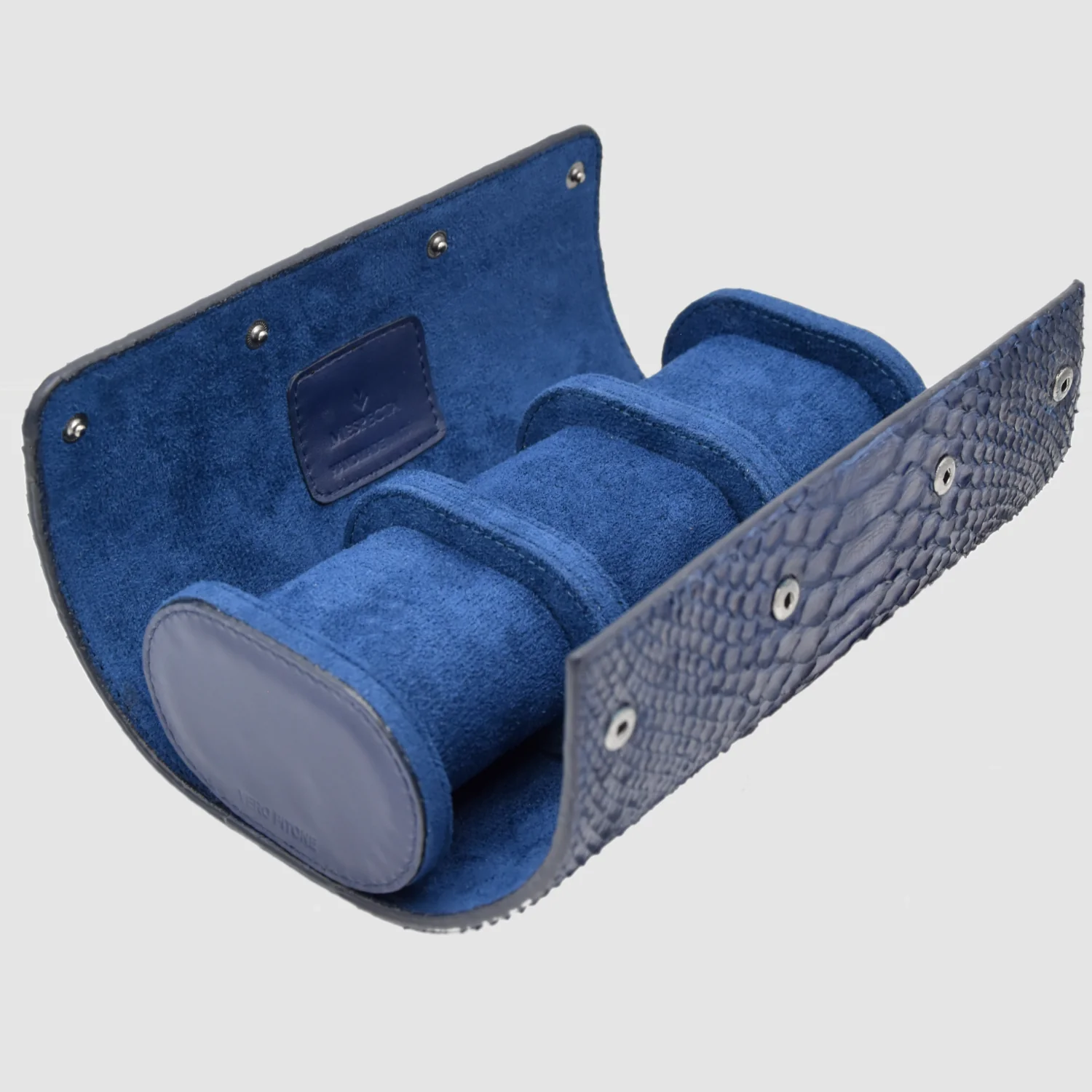 Portaorologio Watch Roll in Pelle di Coccodrillo Blu Personalizzato 3 slot per 3 orologi