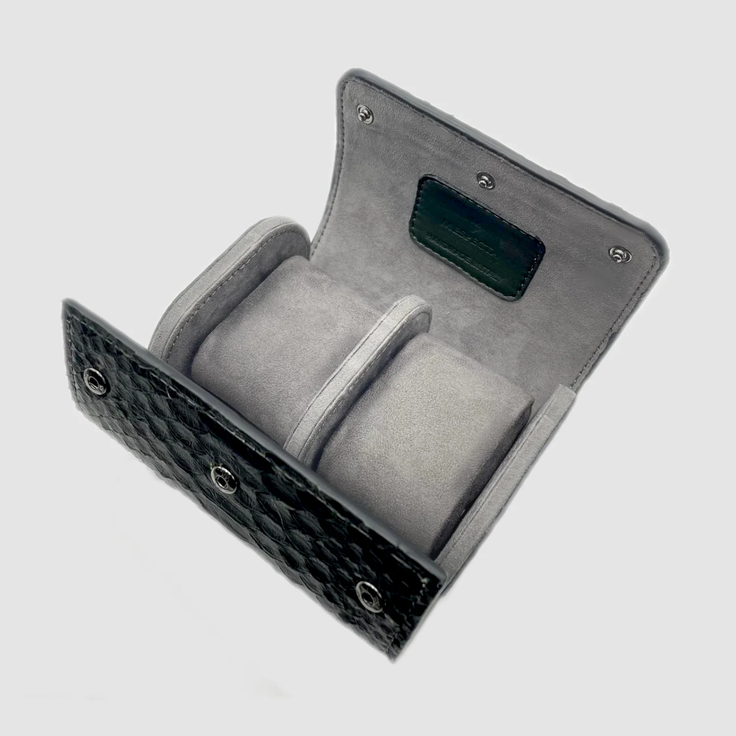 Portaorologio Watch Roll in Pelle di Coccodrillo Nero Personalizzato Made in Italy 2 slot