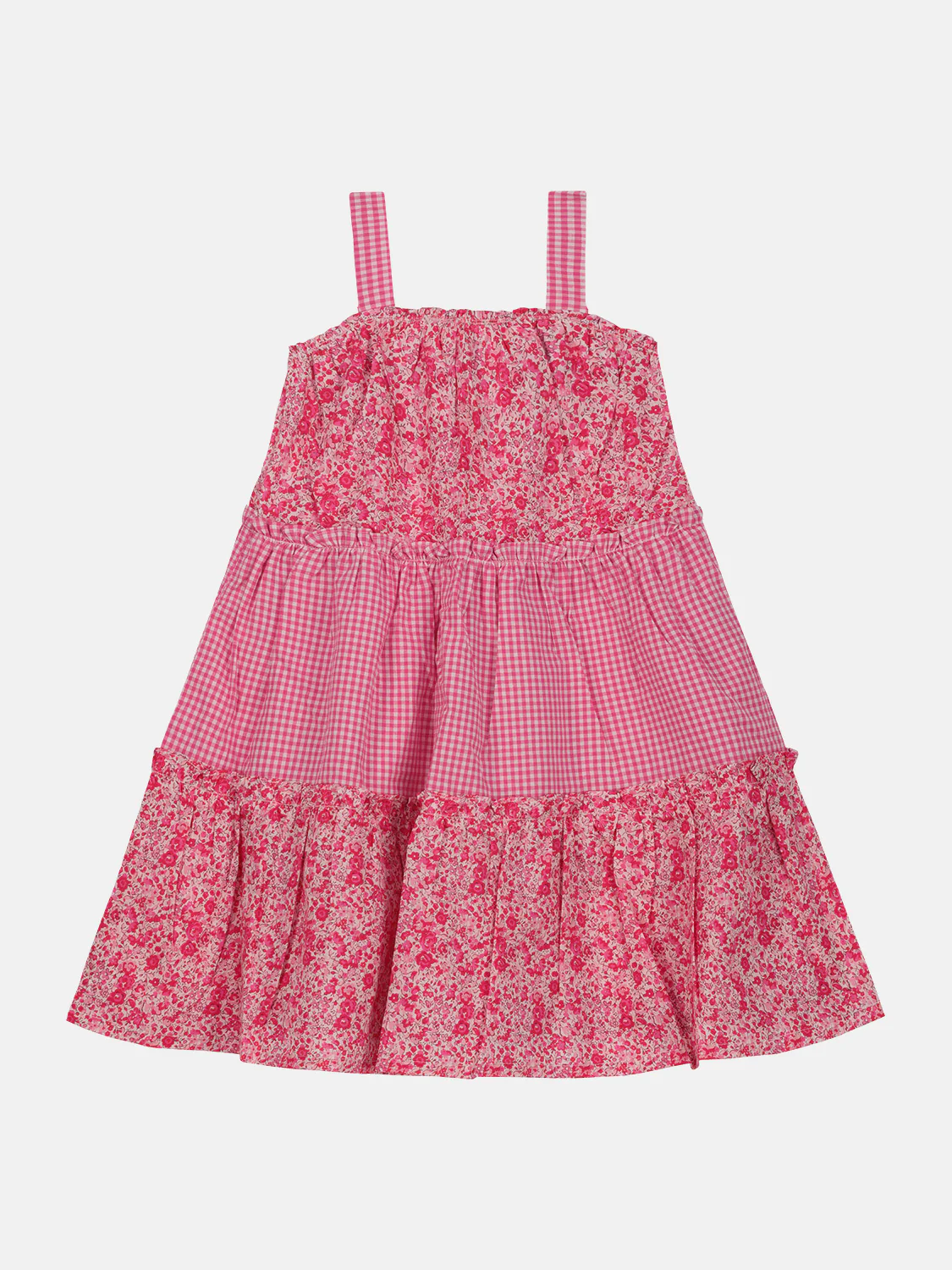 Prendisole Bambina Balze Rouches Patchwork Liberty Betsy Fluo Rosa Azzurro