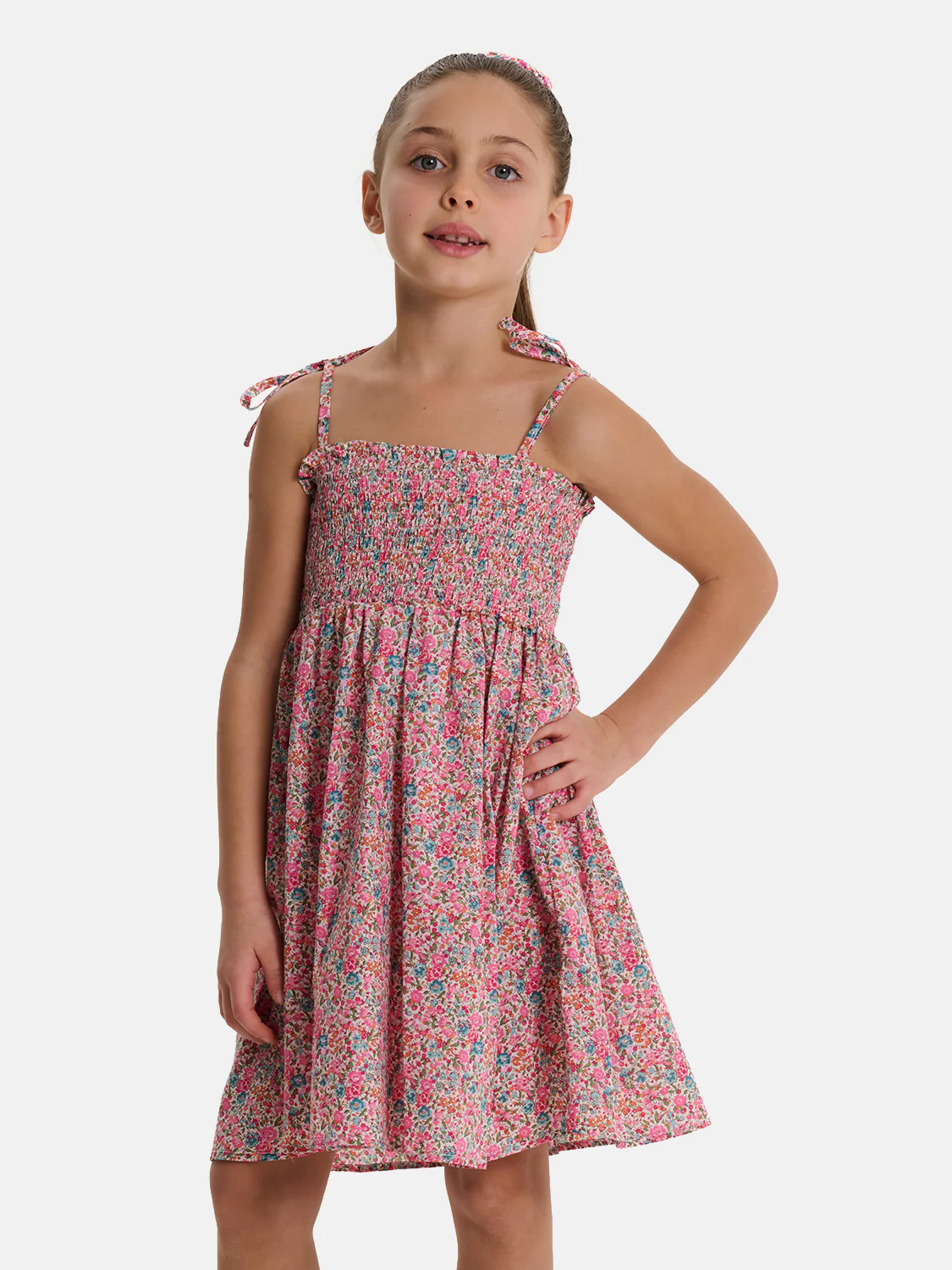 Abitino prendisole con filza elastica, bambina realizzato in 100% cotone Liberty Tana Lawn, un tessuto leggero, morbido e naturalmente traspirante, ideale per accompagnare le bambine con comfort durante tutta la giornata.