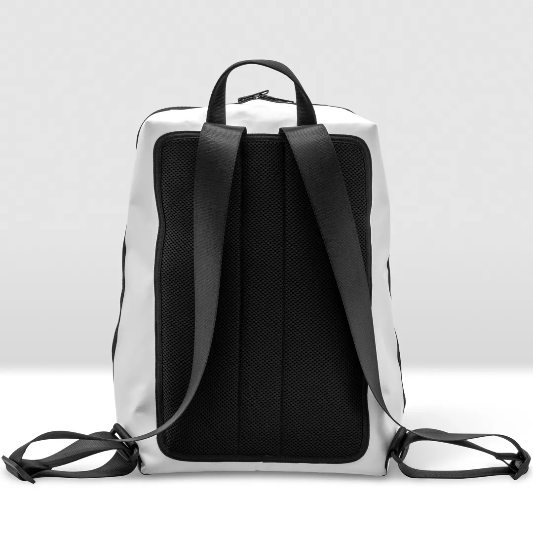 Tasca interna stampata porta pc adattabile alla dimensione del computer, cinghia blocca pc e tasca porta accessori in banner.