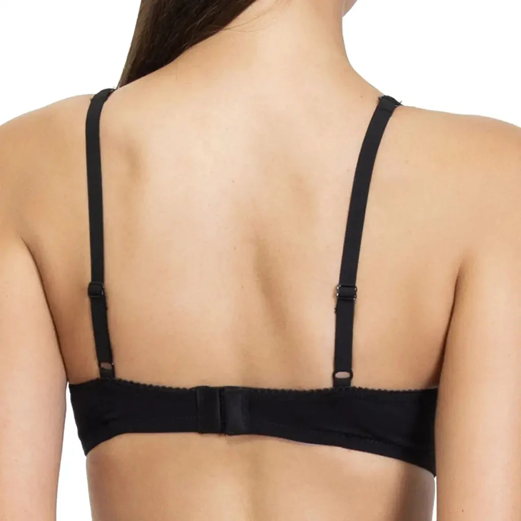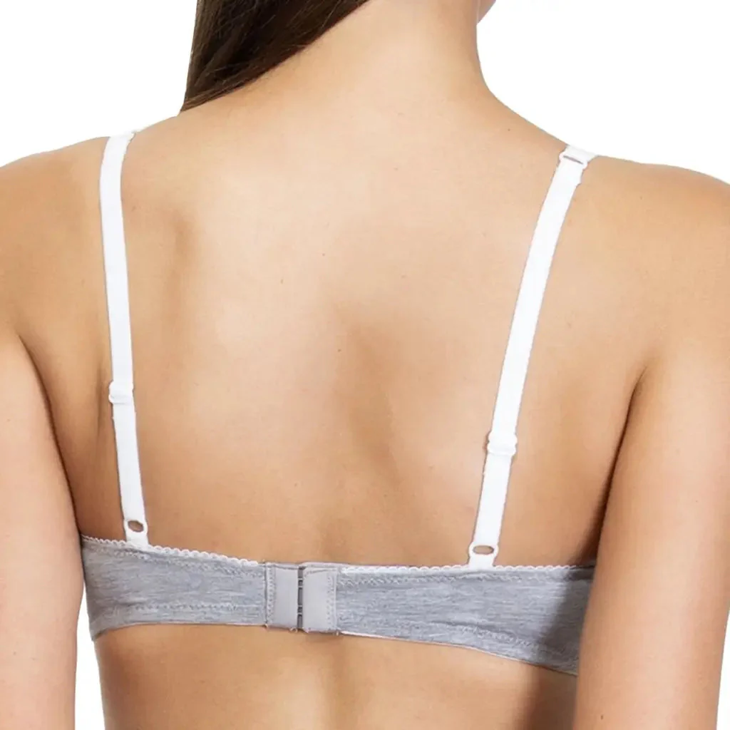 Reggiseno a triangolo imbottito della linea True di Verdissima. La nuova linea True si contraddistingue per l’uso di cotone biologico che si unisce l’inconfondibile stile Verdissima ad una scelta differente di comfort ed unicità. Questo reggiseno ha una struttura studiata e comoda, adatta ad un utilizzo quotidiano grazie al design basic e all’assenza di ferretto. Il modello ha una coppa a triangolo con un’imbottitura leggera e traspirante che si addice perfettamente a tutte le stagioni. Questo reggiseno ha varie lunghezze di gancetti sulla schiena, per adattarlo alle proprie esigenze e gli spallini sono completamente regolabili, per il massimo del comfort. Nelle varianti Nero e Milk le rifiniture sono in tono di colore, mentre nella variante Grigio Melange sono in contrasto.