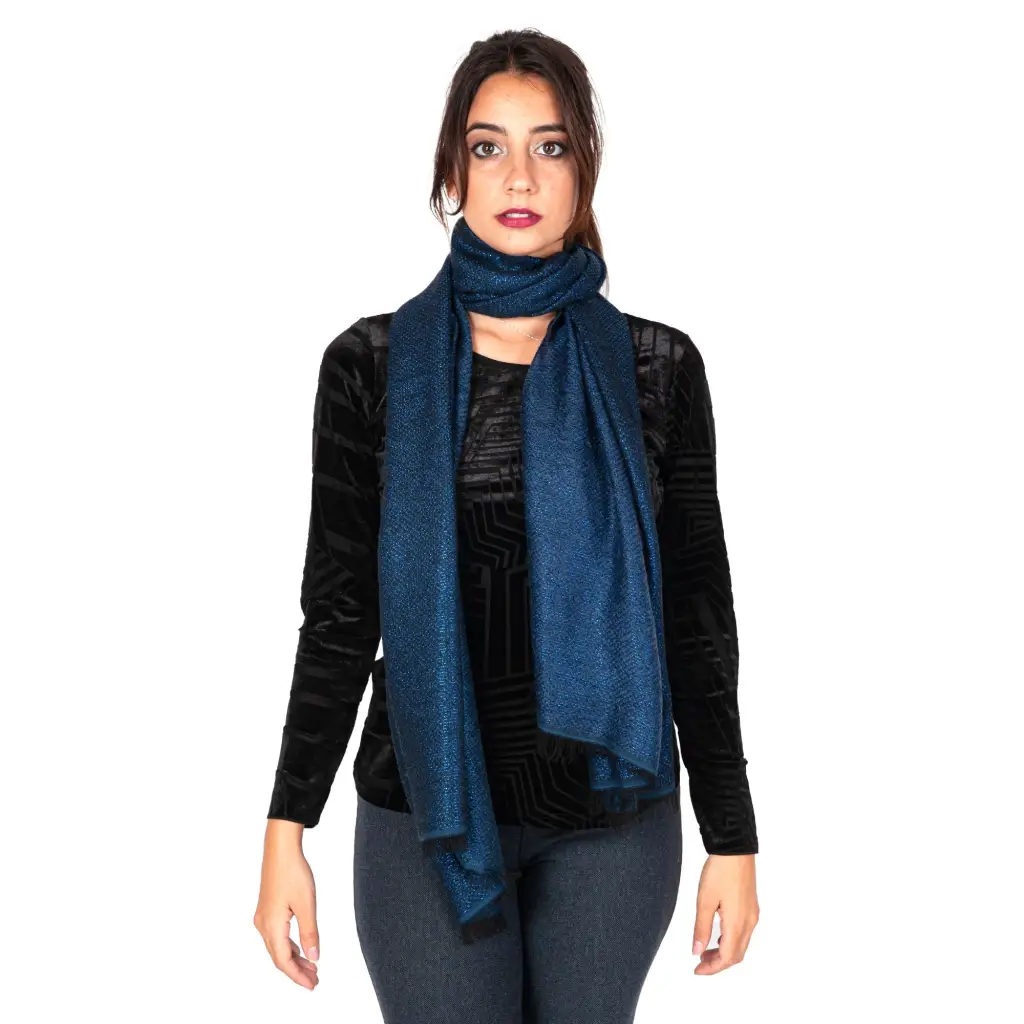 Sciarpa in misto lana della linea Luxury di Zita del Forte. Questa linea di sciarpe si contraddistingue per la brillantezza unica data dal filo lurex intrecciato direttamente nel tessuto. Con abbinamenti classici senza tempo, questa sciarpa è in grado di abbinarsi perfettamente a moltissimi look diversi. Disponibile in diverse combinazioni di colore è versatile per rifinire sia look da sera che da giorno. Made in Italy.