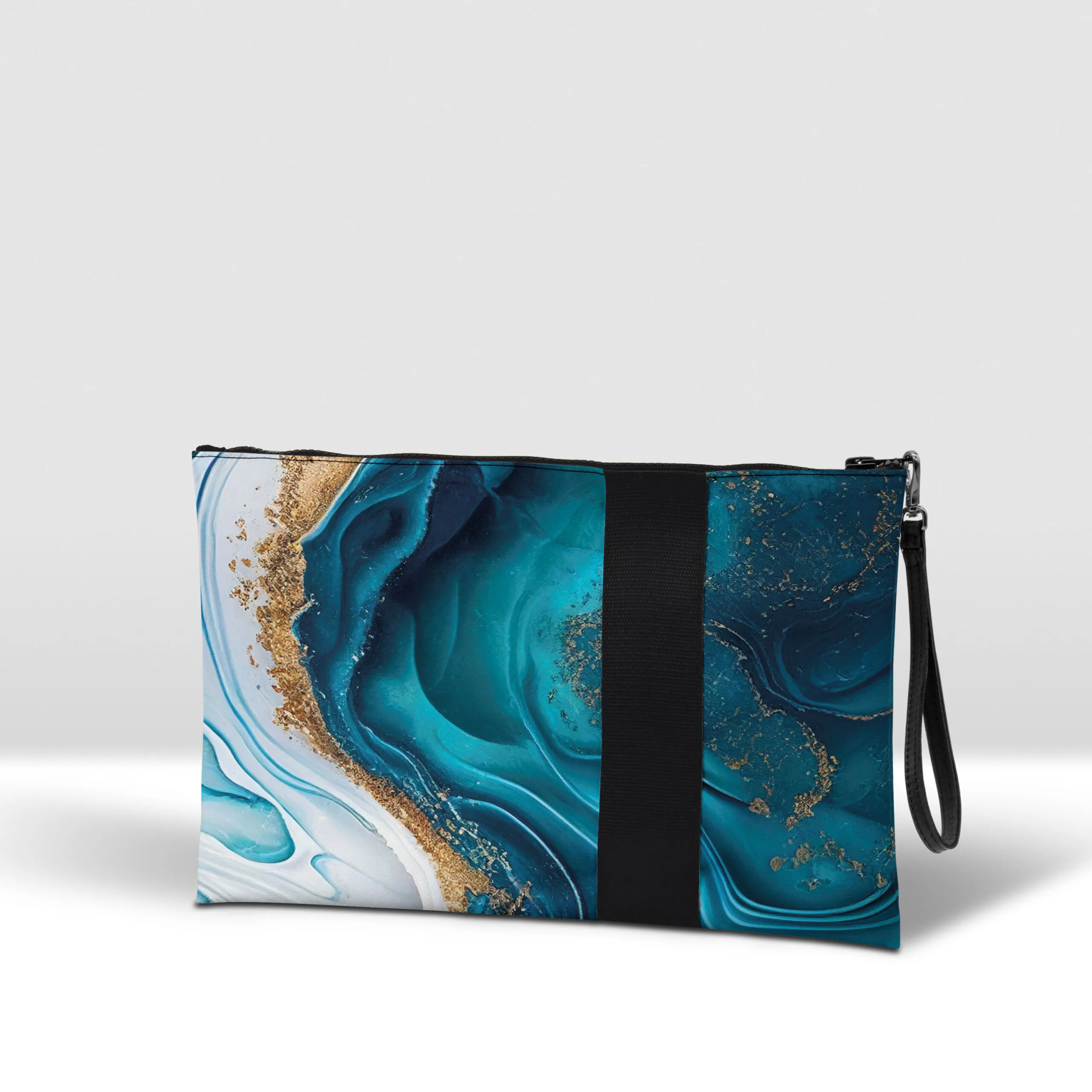 Pochette in banner PVC 560, stampato, con zip pressofusa.