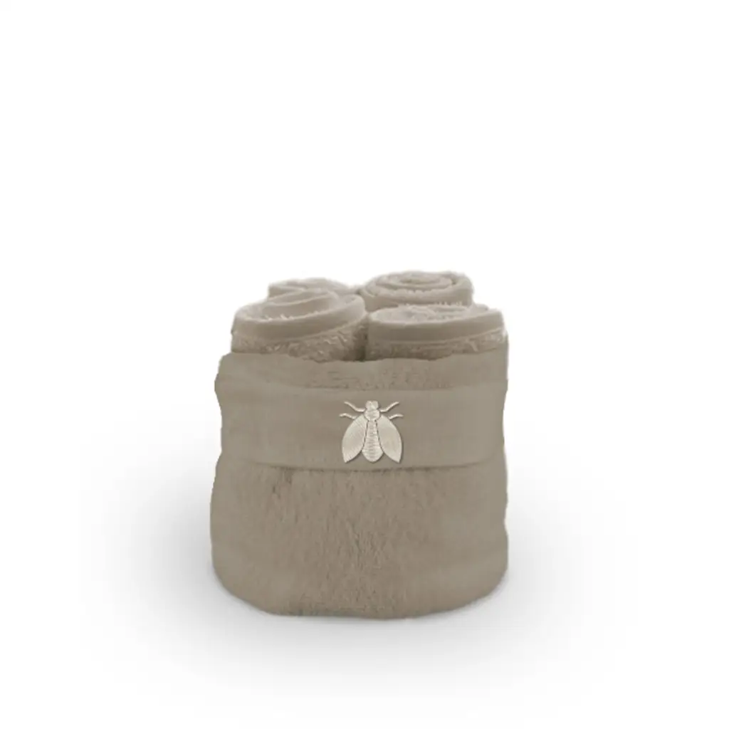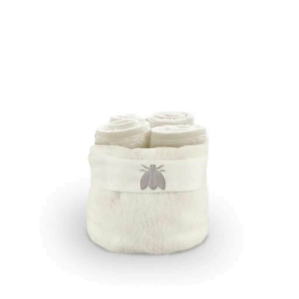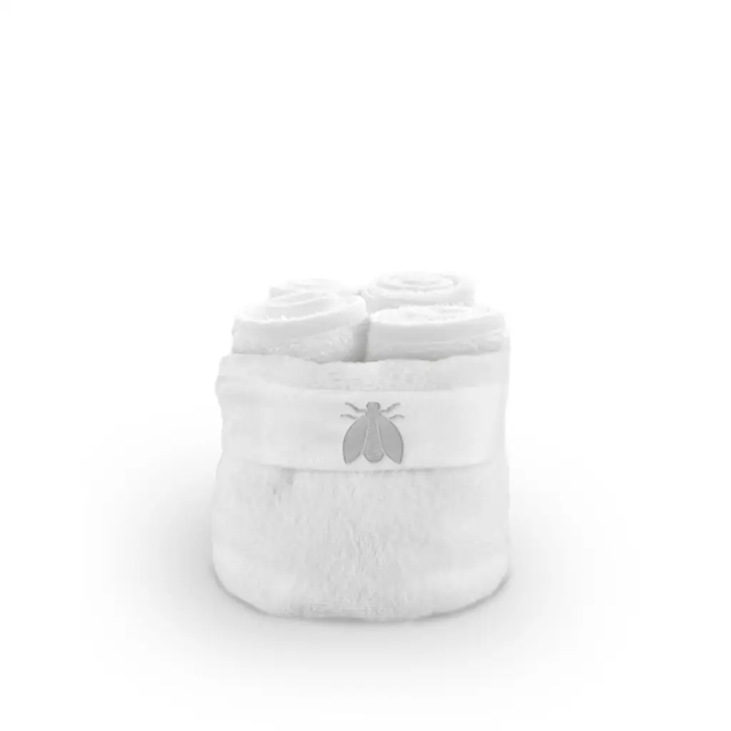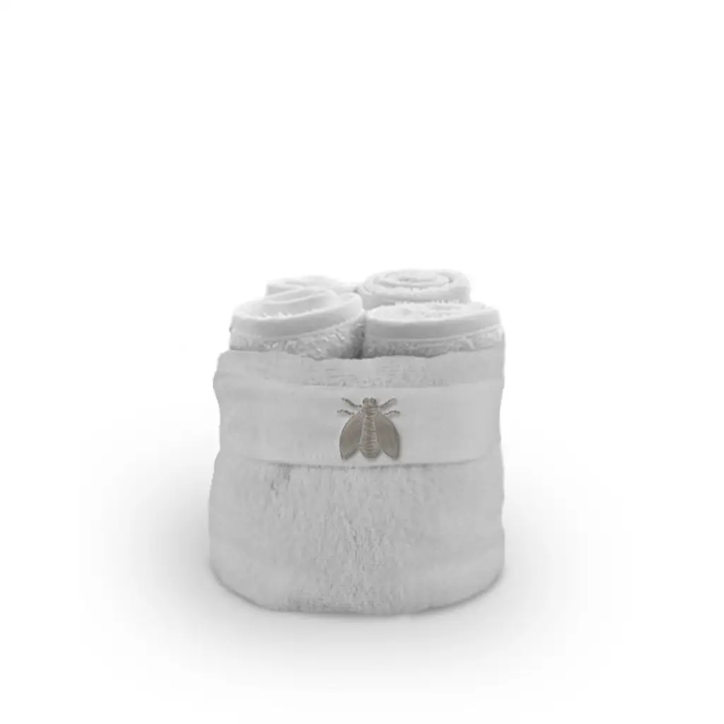 Set di 4 lavette in spugna di cotone della linea Fly. Queste lavette sono semplici nel design ma molto carine da lasciare a vista nel bagno. Da utilizzare come piccoli asciugamanini per gli ospiti o per struccarsi evitando di macchiare gli asciugamani più grandi, sono un’ottima idea regalo. Il cestino è in tono su tono, raffinato ed elegante, con una piccola ape rimarcata, simbolo di vita e buon auspicio. Disponibile in 6 colori.
