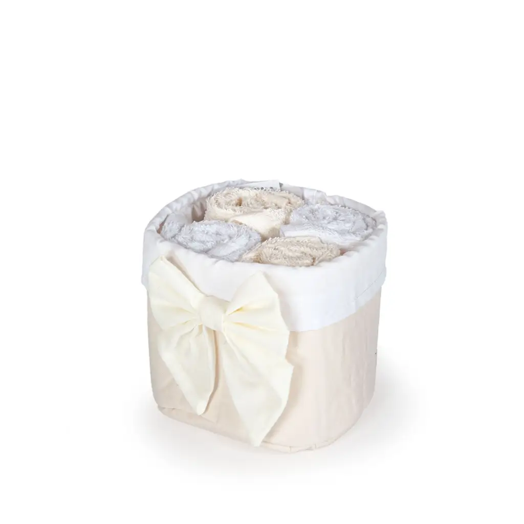 Set 4 lavette per bagno con cestino portalavette Fiocco | Daunex