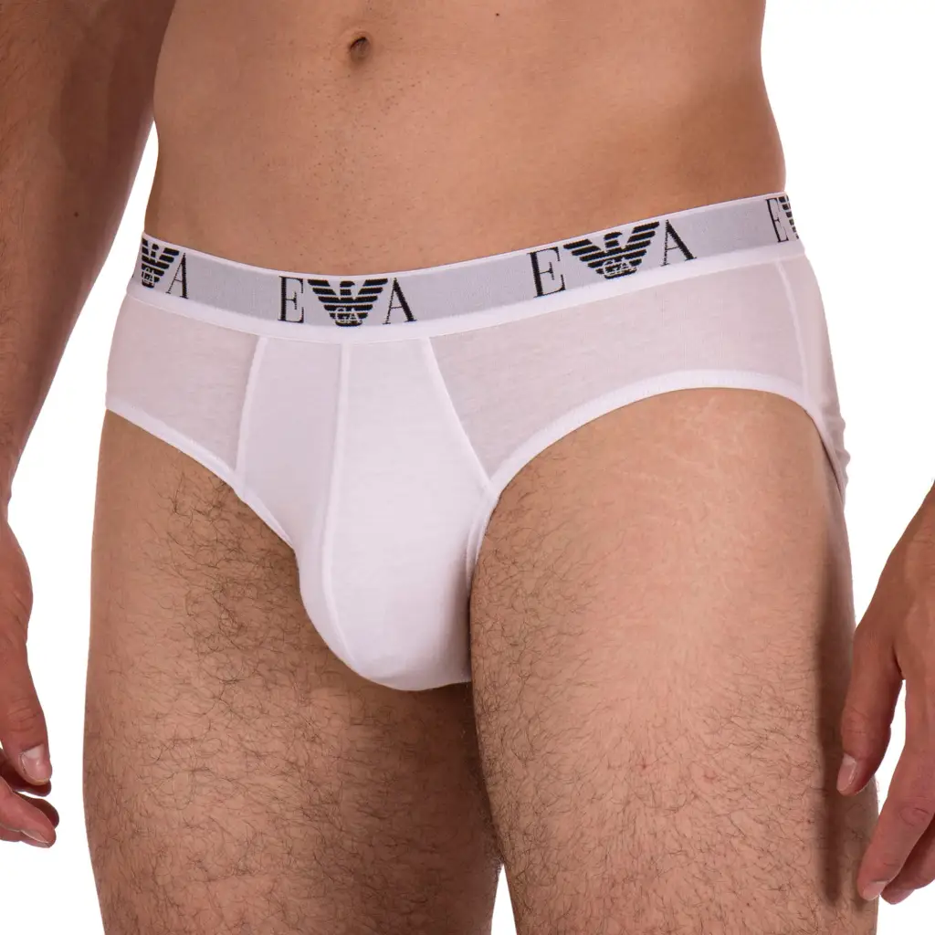 Slip uomo in cotone elasticizzato con elastico a vista con logo | Emporio Armani