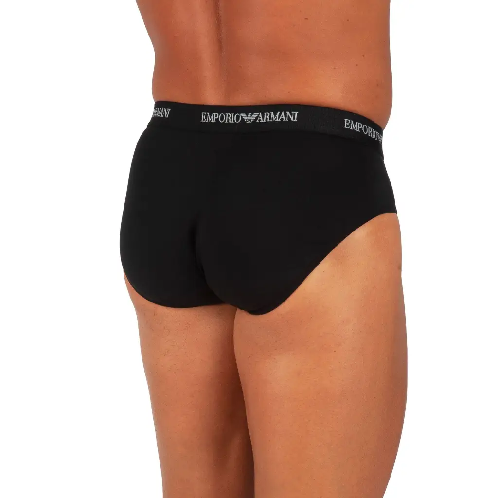 Slip in cotone elasticizzato della linea Emporio Armani. Questa linea esclusiva e alla moda è realizzata in un morbido cotone elasticizzato in tinta unita ed elastico in tono su tono per non creare stacchi ed essere uniforme con lo slip. Il colore nero lo rende un grande classico basic che non passa mai di moda e da avere sempre nell’armadio. Questo slip si abbina perfettamente alla t-shirt della stessa linea. Questo slip è disponibile anche nella versione Bianco e Blu.