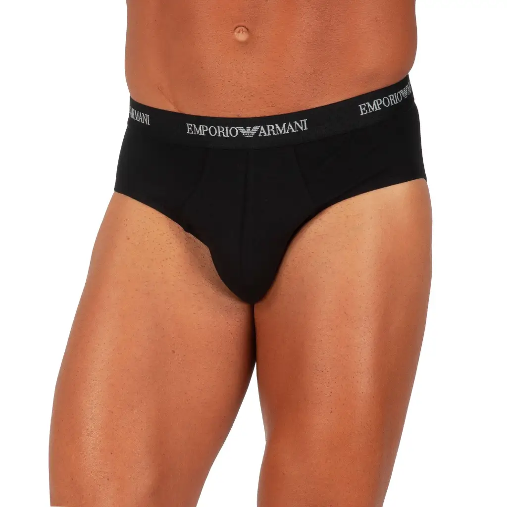 Slip uomo in cotone elasticizzato con elastico a vista | Emporio Armani