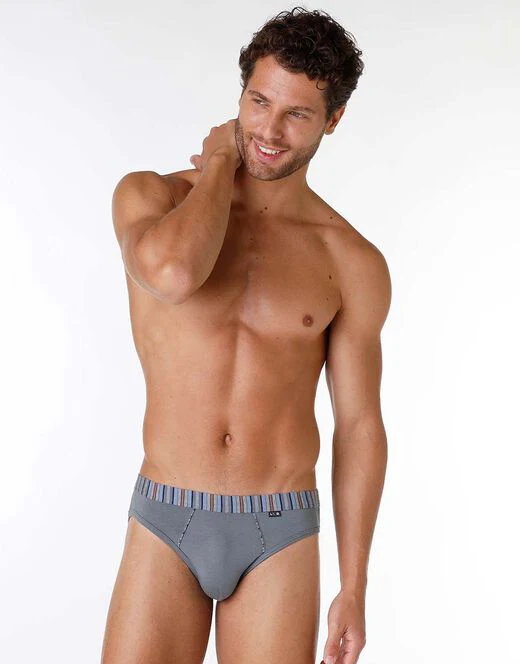slip uomo Questo slip presenta le piping in contrasto colore mentre lโelastico in vita รจ ricoperto. Il tessuto รจ in cotone modal risultando cosรฌ sottile, leggero, liscio. Super resistente allโumiditร e quindi traspirante. ร anche extra morbido al tatto. Slip bi-pack 53% Cotone, 40% Modal, 7% Elastan COD. L0CXO