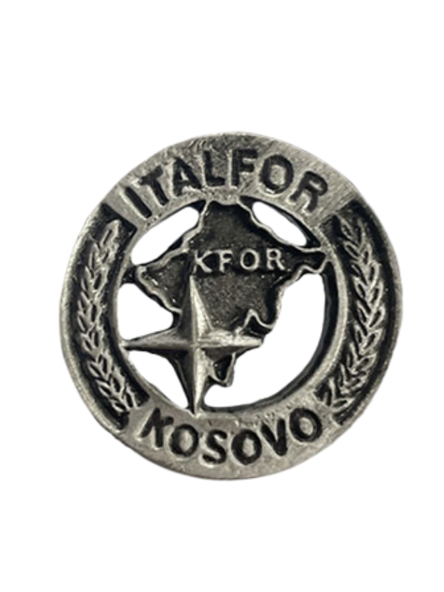 La spilla o distintivo Missione ITALFOR KFOR KOSOVO è un emblema che simboleggia la partecipazione italiana alla missione di pace NATO in Kosovo.