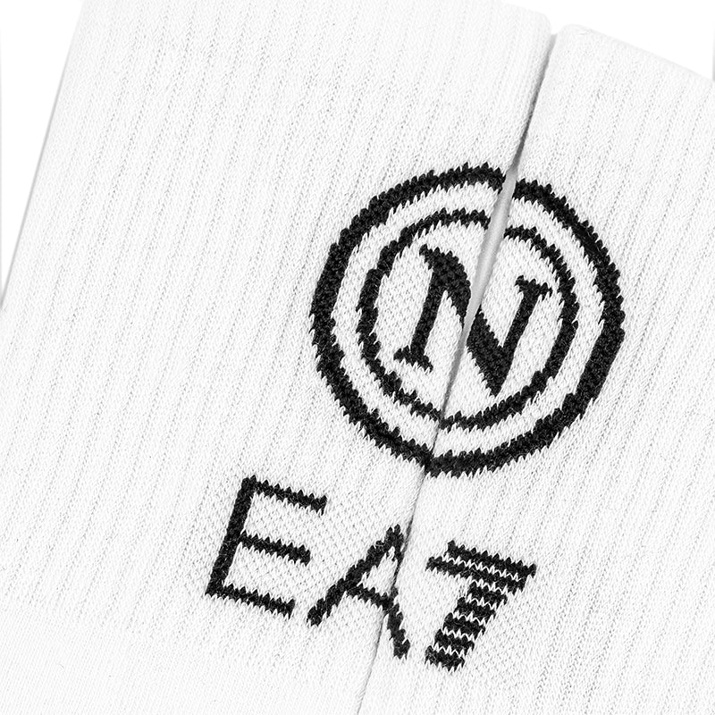 Il design funzionale delle calze bianche รจ arricchito dai loghi SSC Napoli e EA7, che simboleggiano l’orgoglio e l’appartenenza al club partenopeo.