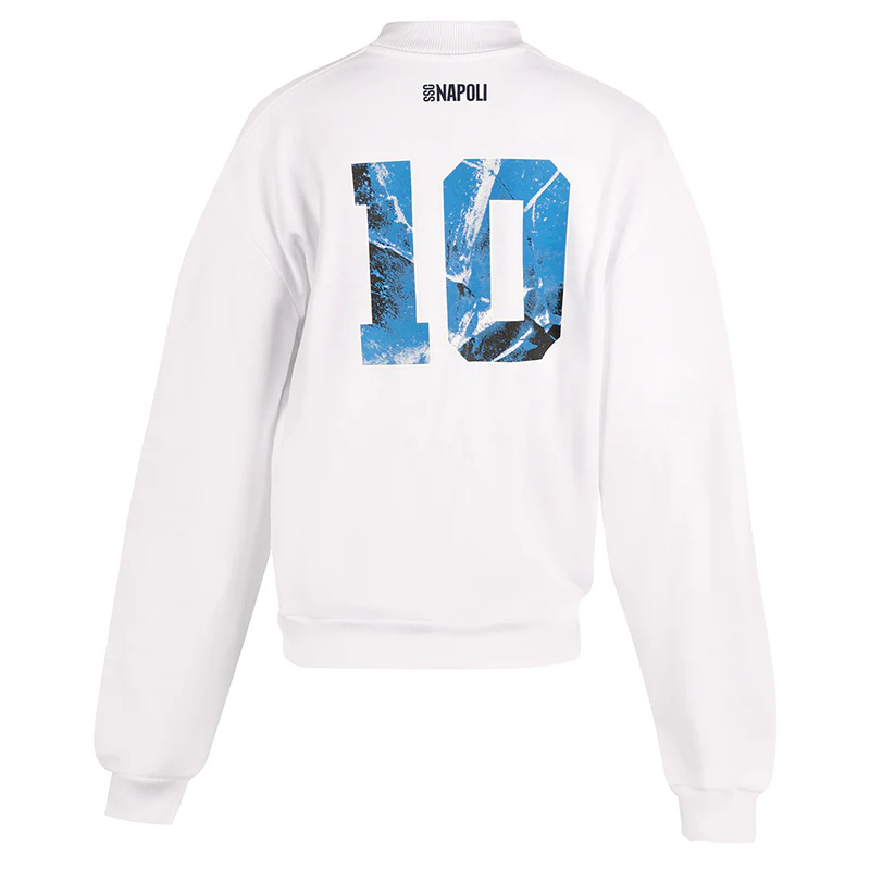 La felpa girocollo Marechiaro Bianca, 100% cotone e Made in Italy, รจ unโicona di comfort e stile partenopeo. Morbida, calda e dal design pulito, รจ pensata per chi vuole vivere Napoli con grinta e autenticitร , portando con sรฉ lโenergia del mare e la passione per il calcio. Sul retro, il numero 10 si trasforma in […]