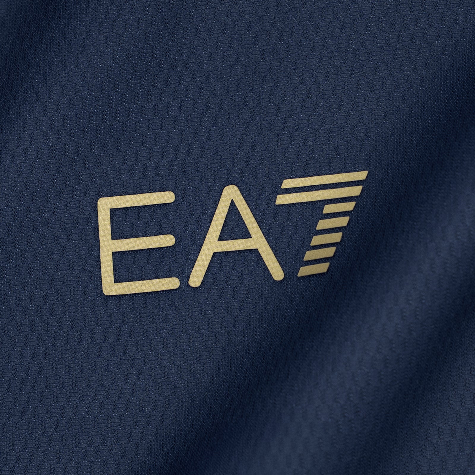 Il blu profondo domina la composizione cromatica, conferendo eleganza e carattere, mentre gli inserti azzurri aggiungono movimento e luminositร . I loghi dorati impreziosiscono la parte frontale, risaltando con finezza e regalando al capo unโaura di prestigio.