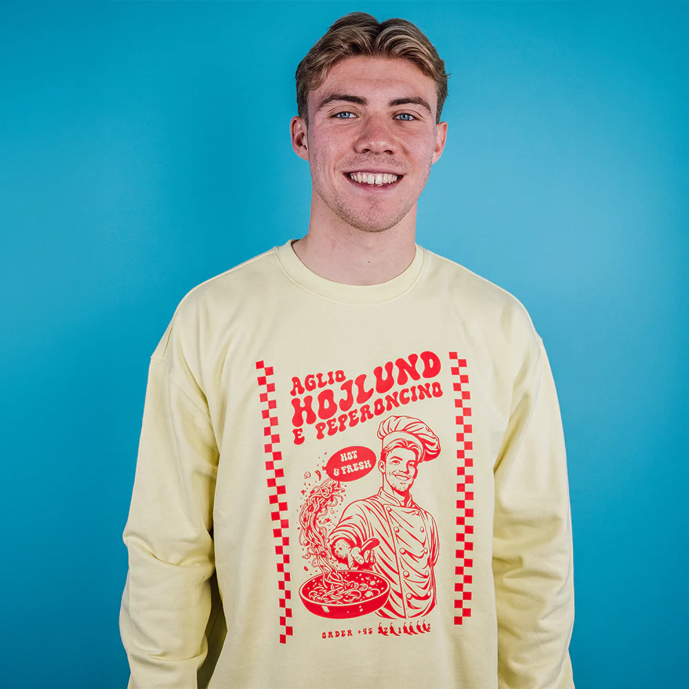 Ogni pezzo รจ prodotto “on demand” per te. Questo processo richiede un pizzico di tempo in piรน per la produzione e la consegna. Felpa Linea Admin SSC Napoli: Danese di nascita, napoletano ai fornelli. Aglio, Hรธjlund & Peperoncino. Composizione: 80% cotone – 20% poliestere riciclato