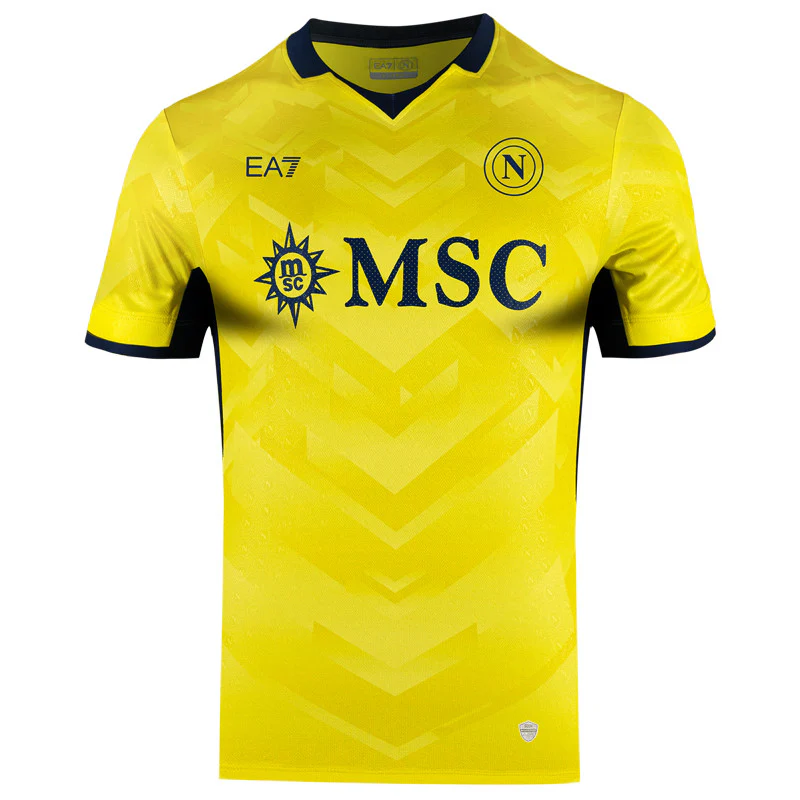 SSC Napoli Maglia gara ufficiale, portiere gialla 2024/2025 Dal brand EA7 by Giorgio Armani group La maglia gara Goalkeeper della SSC Napoli per la stagione 2024/2025 propone un design di movimenti dinamici in degradè su stampa digitale. Questa variante presenta il colore surphur spring con contrasti blu navy. Il jersey in poliestere sport performance presenta […]