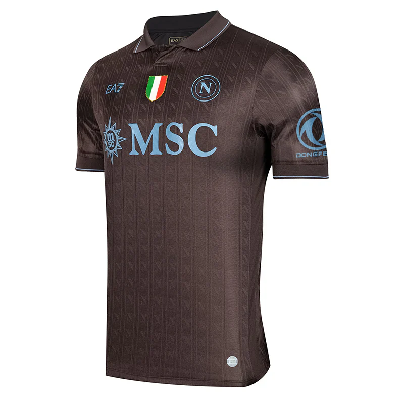 Dal brand EA7 by Giorgio Armani Group. La maglia gara third โMokaโ della SSC Napoli per la stagione 2025/2026 รจ unโinterpretazione elegante e potente che fonde estetica urbana e visione internazionale, impreziosita dallo scudetto tricolore al centro del petto, simbolo del titolo di Campioni dโItalia conquistato nella stagione 2024/2025.