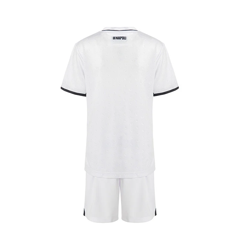 Il set gara junior bianco del Napoli è un completo pensato per i giovani tifosi del club partenopeo. Questo set è composto dalla maglia e dai pantaloncini bianchi, entrambi realizzati in poliestere per garantire comfort e prestazioni ottimali durante il gioco.