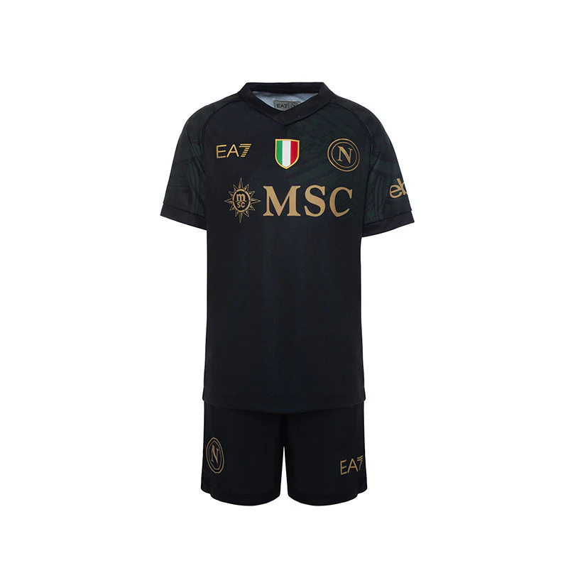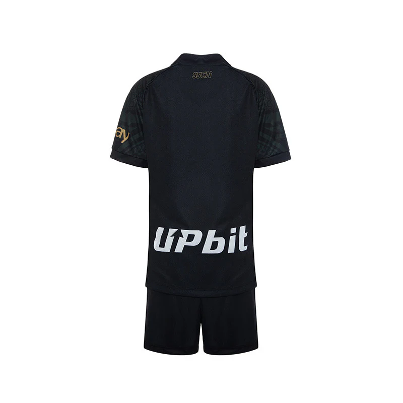 SSC Napoli set gara third Junior 2023/2024, composto dalla maglia nera e pantaloncini. 100% poliestere