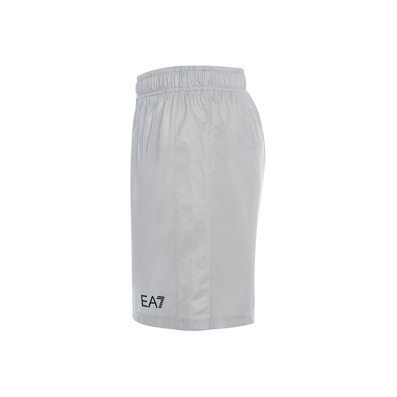 La vita รจ elasticizzata e dotata di un cordino interno regolabile per una calzata sicura e personalizzata. Sul lato destro spicca lo stemma ufficiale della SSC Napoli mentre sul lato sinistro si trova il logo EA7 in contrasto.