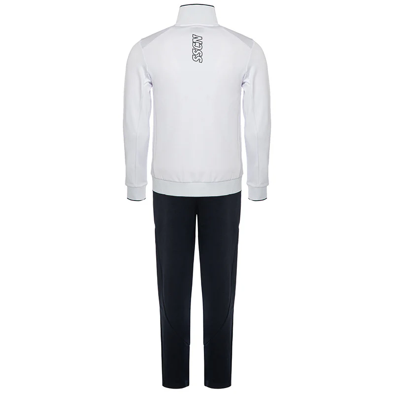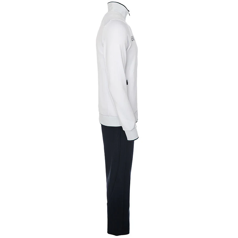 Tuta rappresentanza interlock bianca 2023/2024. Apertura frontale con zip, tasche laterali. Pantalone con fondo gamba in costina. 80% cotone, 20% poliestere
