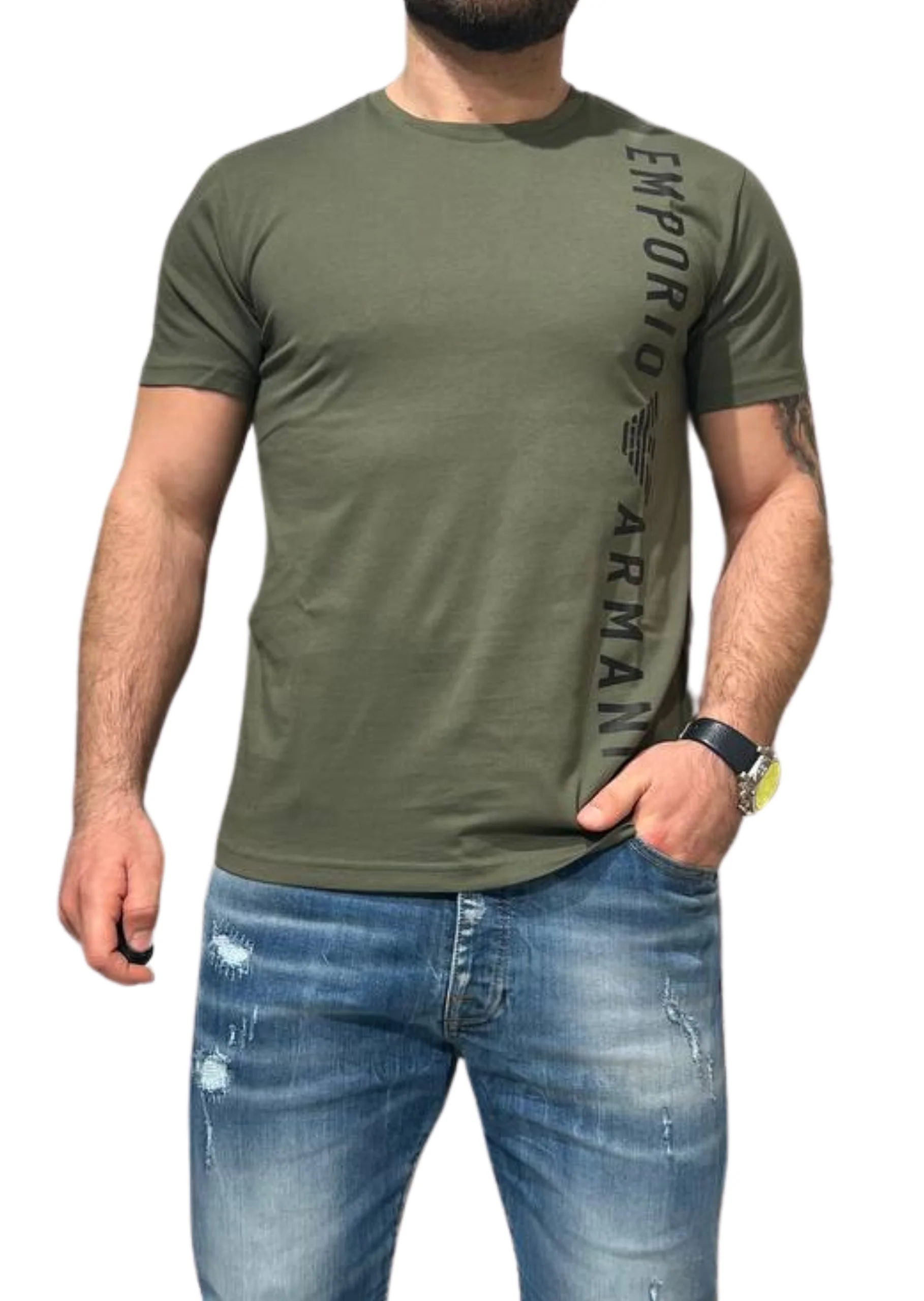 Cool e casual, la t-shirt uomo Emporio Armani รจ un must per ogni guardaroba. Realizzata in morbido cotone al 100%, รจ decorata con una stampa audace su tutto il lato sinistro davanti. Disponibile nei colori nero, verde militare e bianco, questa t-shirt รจ perfetta per un look urbano e alla moda.
