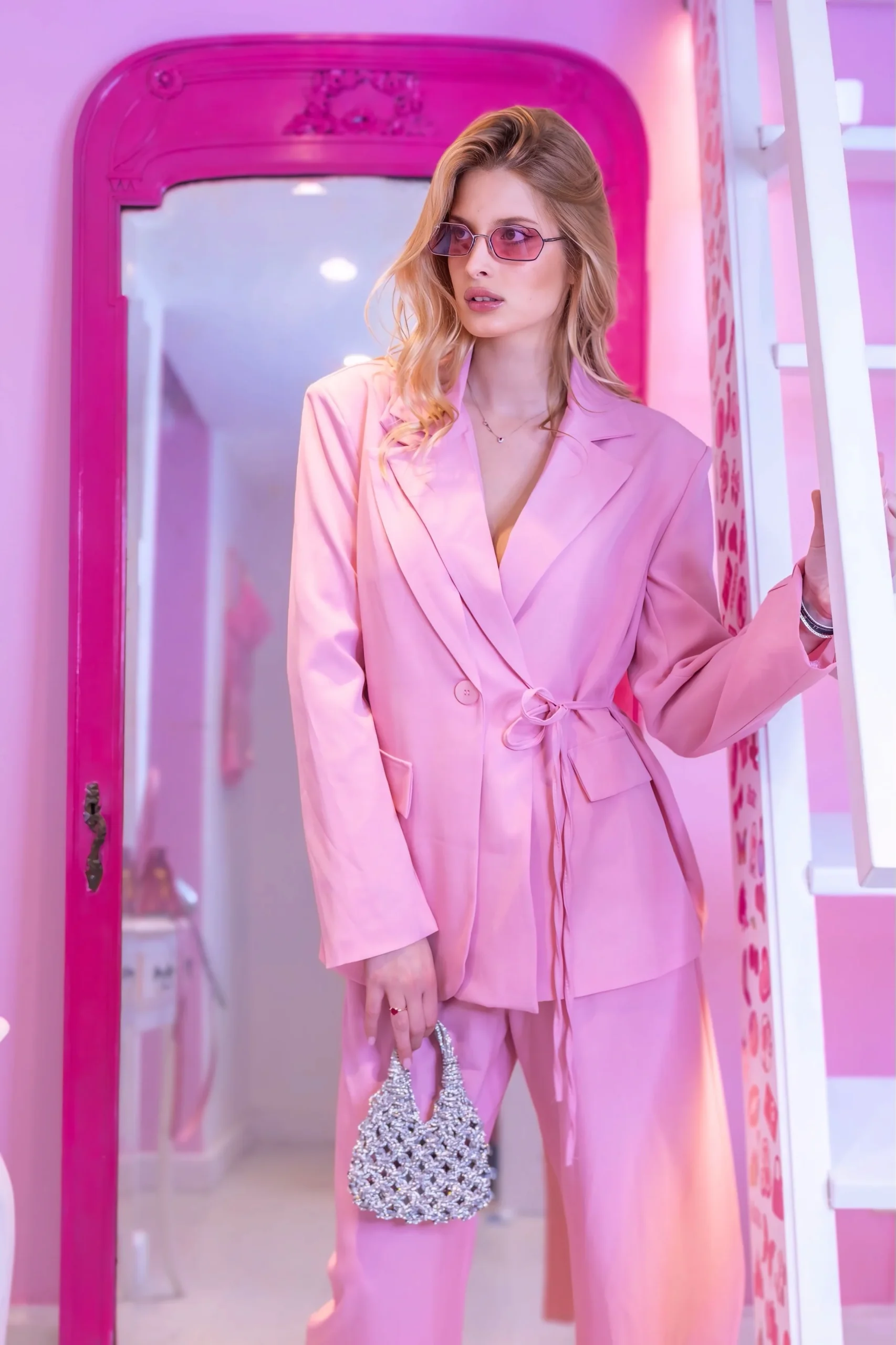 Tailleur con doppia fibbia e pantalone balloon. Veste da una taglia Xs ad una taglia XL