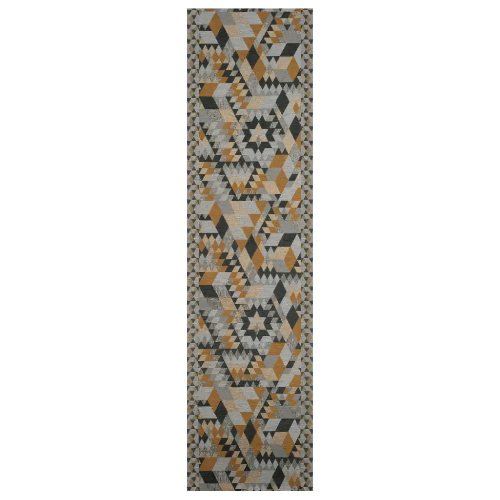 Tappeto a guida in vendita al metro della linea Dimensione. Questo tappeto รจ perfetto per ambienti molto diversi tra loro: puรฒ essere posizionato, infatti, sia in cucina che nell’ingresso, ma anche in camere o corridoi. Queste passatoie sono perfette per molti ambienti, perchรจ vengono sottoposte ad un trattamento superficiale resinato antisfilo, che permette di tagliarle facilmente a misura con un semplice paio di forbici. Per un taglio netto e semplice, le passatoie sono graduate sulla parte inferiore, con un distanziatore di 10 cm, per permettere un facile adattamento alle proprie esigenze. La manutenzione ed il lavaggio sono molto semplici, basta un ciclo in lavatrice ed il tappeto torna come nuovo. Tutte le passatoie sono realizzate in Italia. La fantasia Dimensione รจ molto particolare grazie alla fantasia geometrica inaspettata e moderna con abbinamenti cromatici ricercati e studiati nei minimi dettagli. Il tappeto Dimensione ha una lavorazione jacquard che gli dona ancora maggiore pregio e bellezza. Scopri qui tutte le altre fantasie delle passatoie a metro.