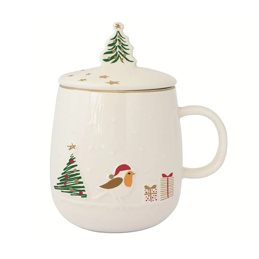 Tazza in porcellana 450 ml con coperchio e infusiera in metallo Let It Snow | Easy Life