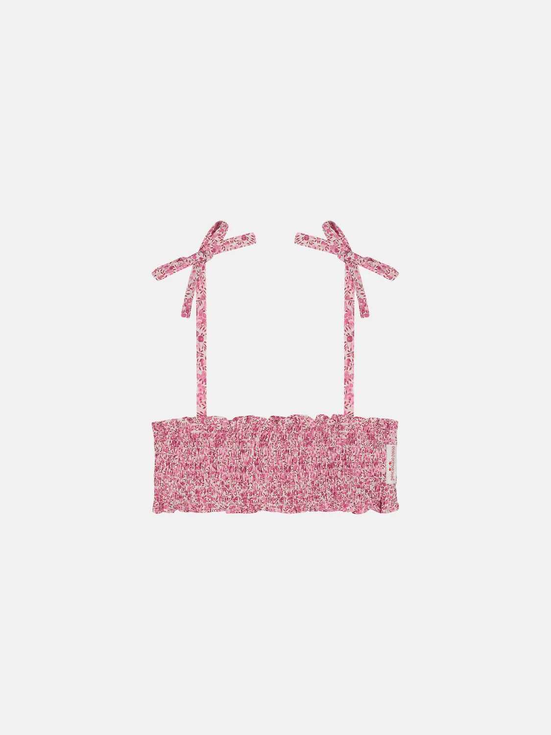 Top a fascia in 100% puro cotone Liberty , arricciato, elastico e comodo con bretelline regolabili. TG I 1-3 years / TG II 4- 5 years / TG III 6-8 years / TG IV 10-12 years Pattern Liberty in esclusiva mondiale Pesciolino Rosso Beachwear