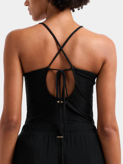 Top con scollo a V impreziosito dal dettaglioad anello logato e con spalline incrociate sul retro. Un capo dal tocco luminoso grazie ai filamenti in lurex presenti nel tessuto. LurexScollo a VDettaglio anello logatoSpalline incrociate sul retroChiusura con lacci sul retroPlacchetta logata in metallo COD. EW001292AF12206FC043