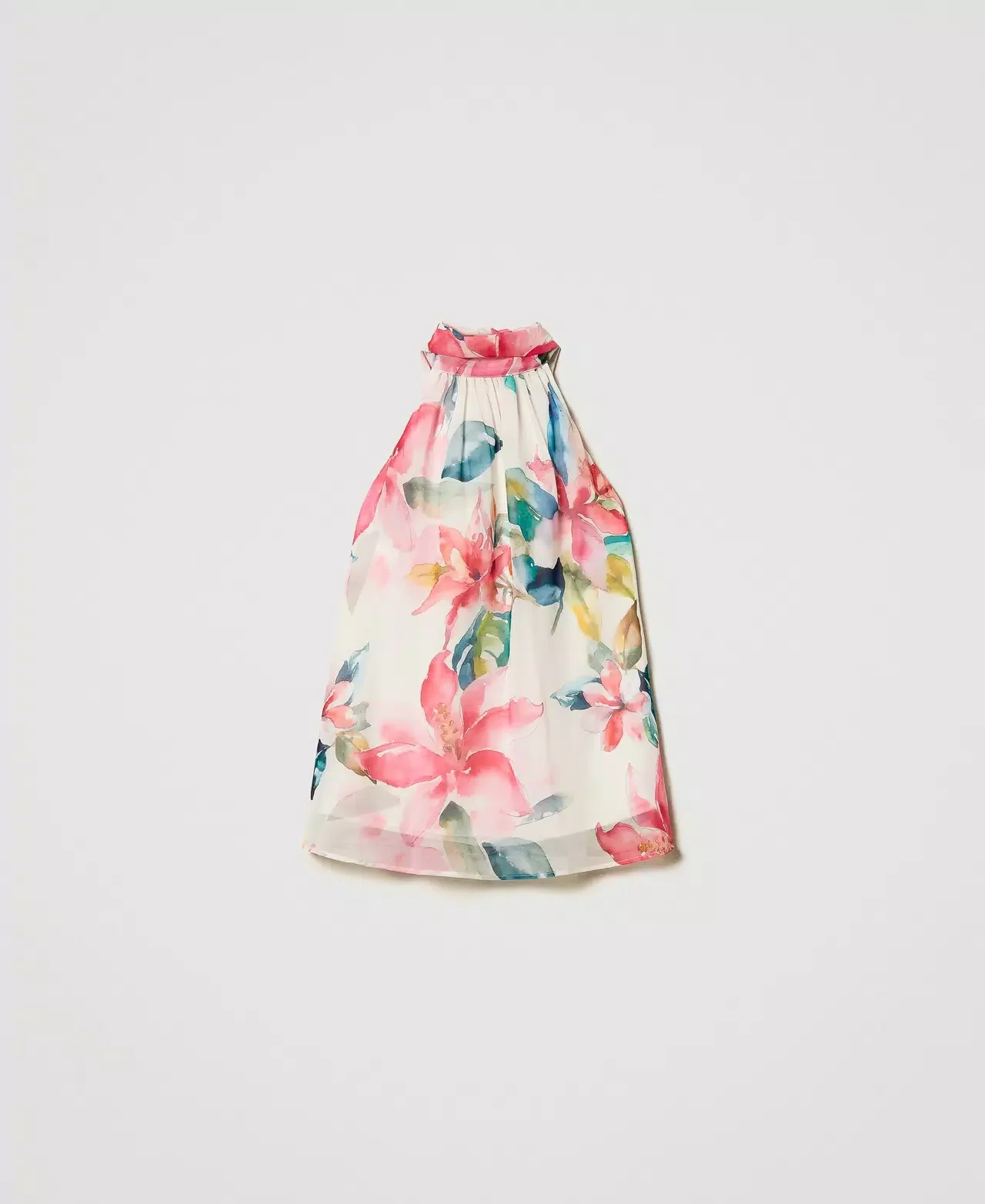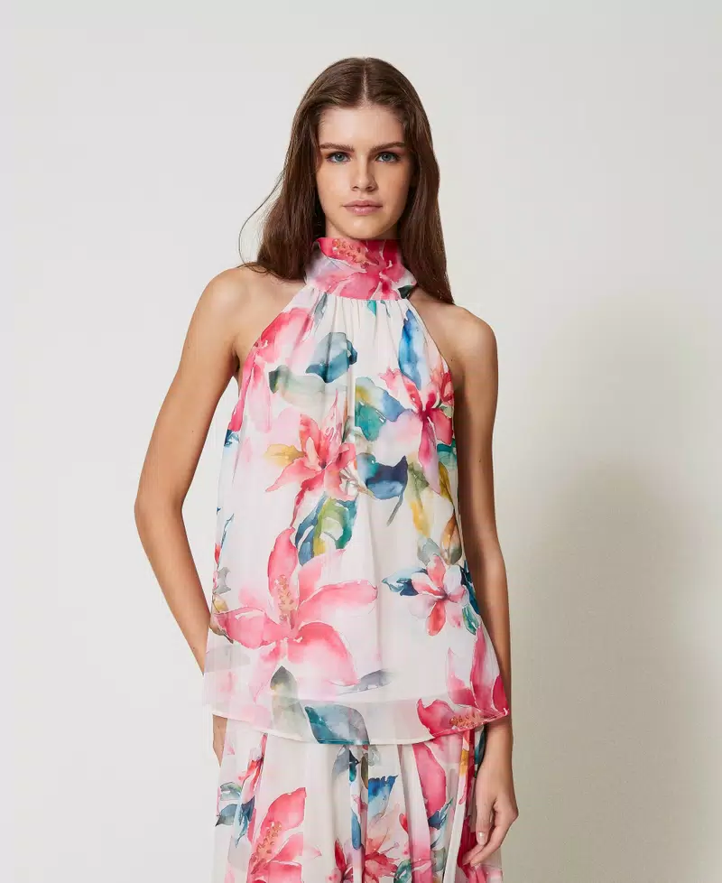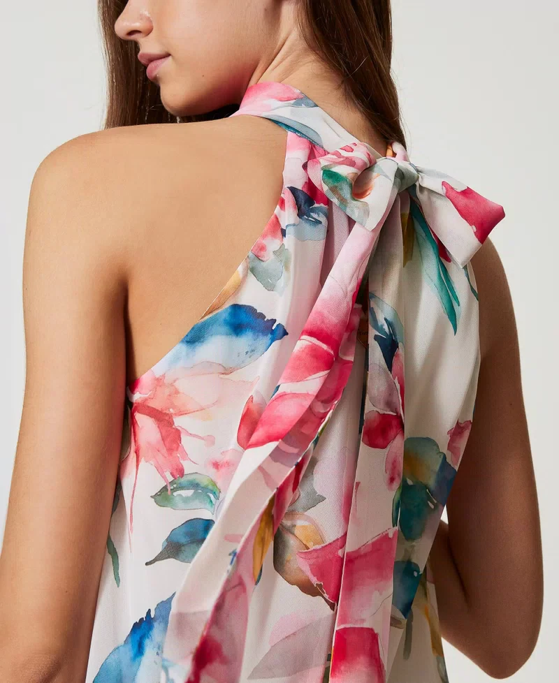 Fiorito e divertente, il top Twinset 251LB2ZAA รจ perfetto per ogni occasione! Realizzato con una stampa floreale che vi farร brillare, il top ha un collo halter con fusciacche da annodare per uno stile unico. Con una linea svasata e un logo a cuore in metallo sul retro, sarร la tua scelta elegante e giocosa ogni volta.